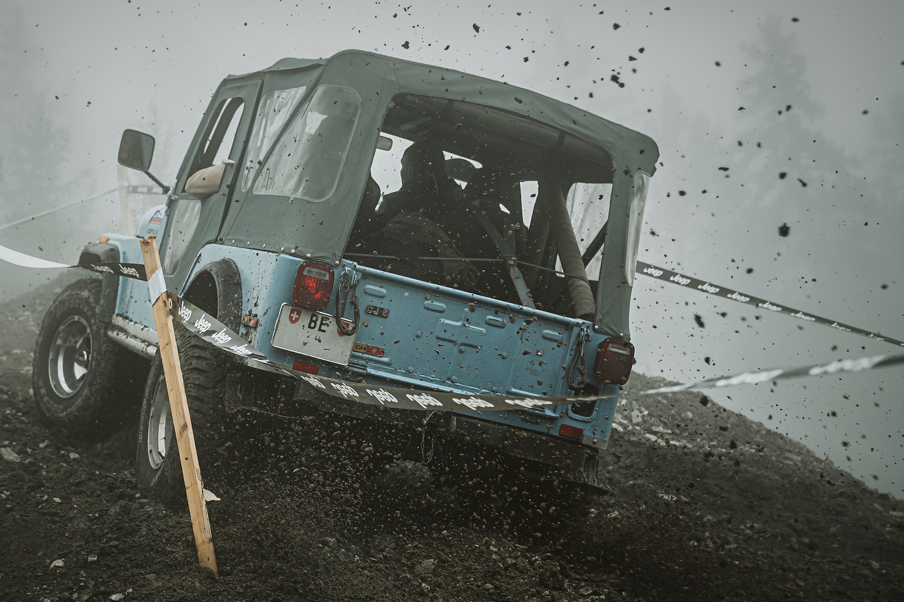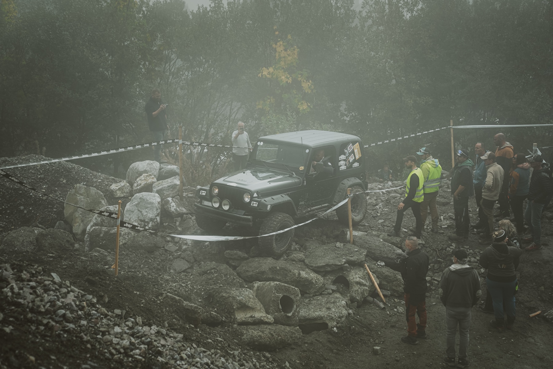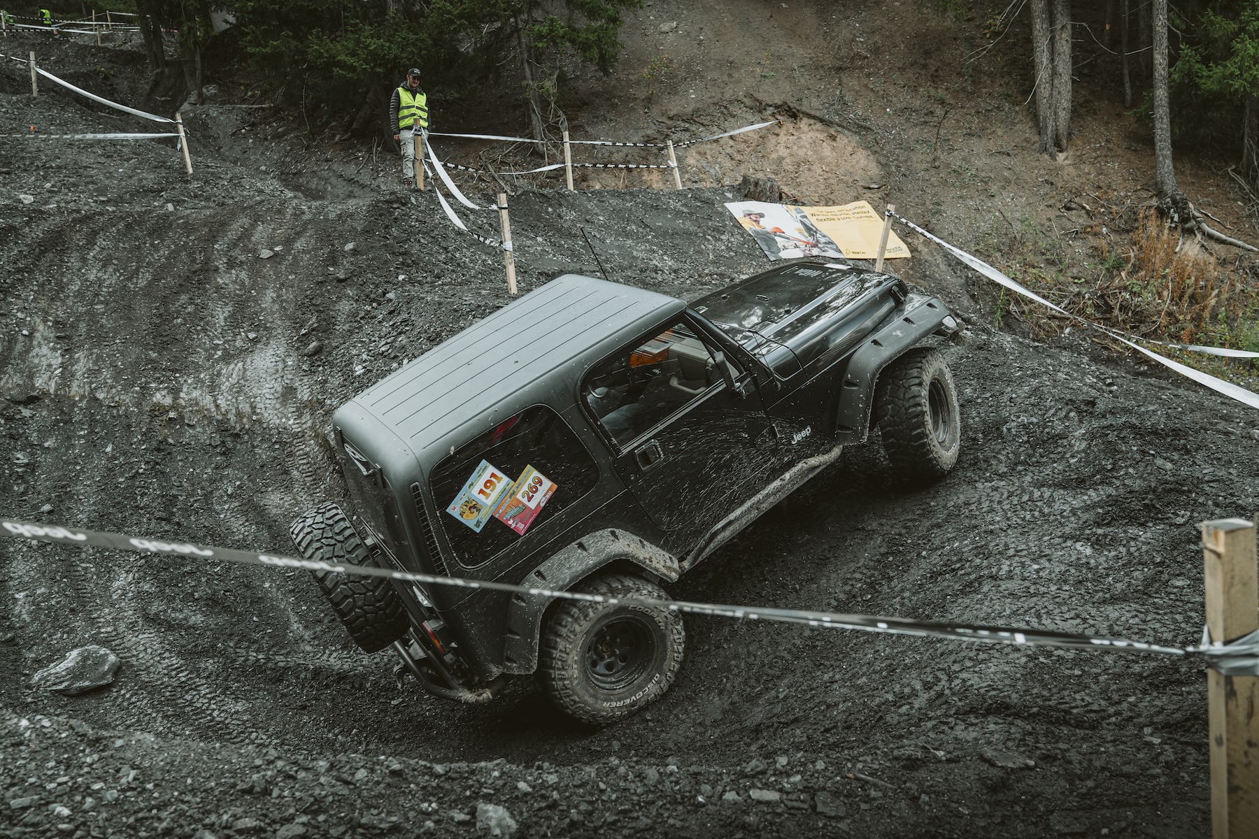 Am Samstagmorgen startet das traditionelle „Jeeping“: eine rund 25 Kilometer lange Tour durchs Skigebiet und die umliegenden Wälder. Dazwischen warten Sonderprüfungen, die es in sich haben – vom Blind-Slalom über steile Kiesgruben bis hin zu Passagen, bei denen man mehr um das eigene Blech bangt als um die Wertung. Wer sich hier einreiht, fährt nicht gegen andere. Er fährt gegen sich selbst.