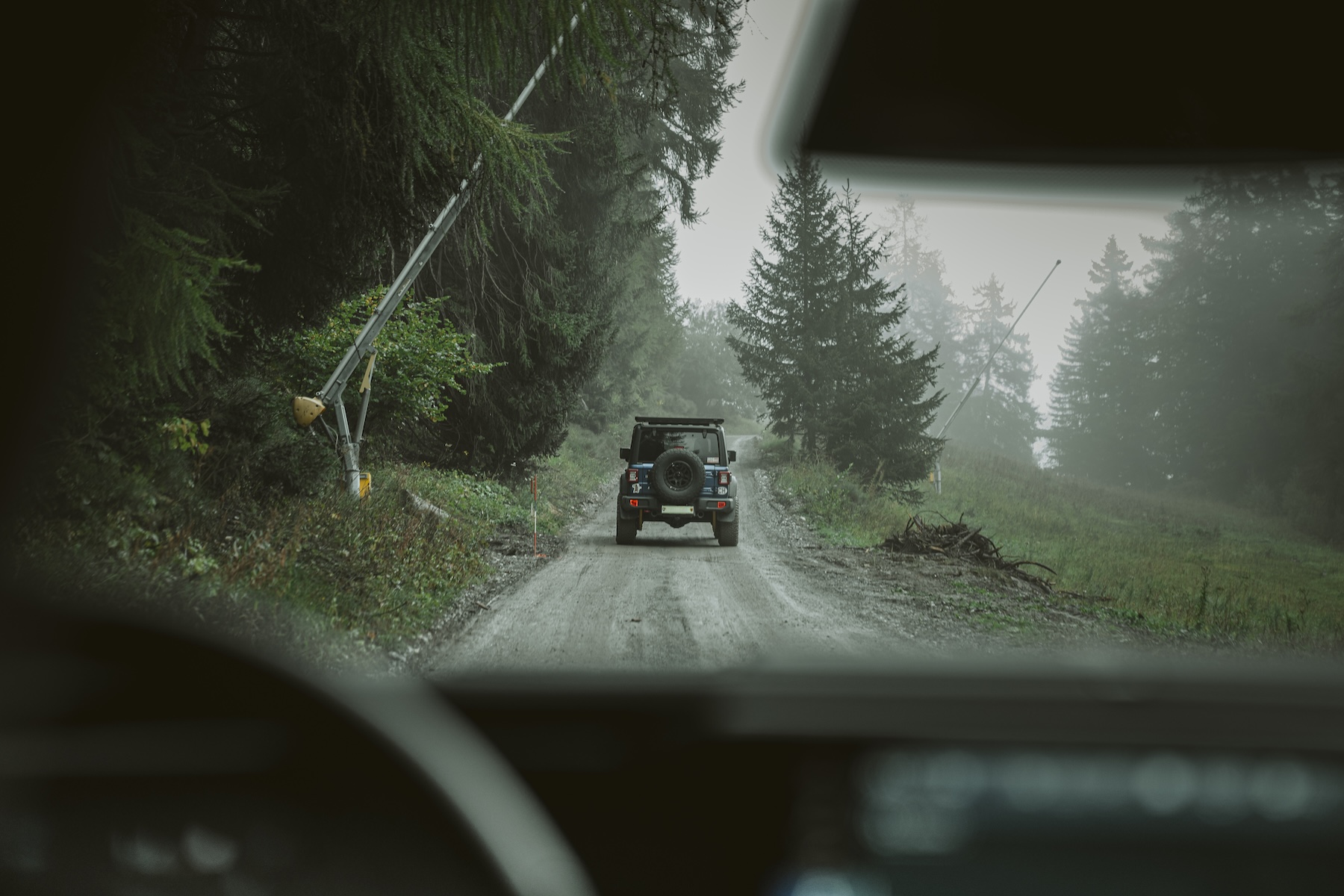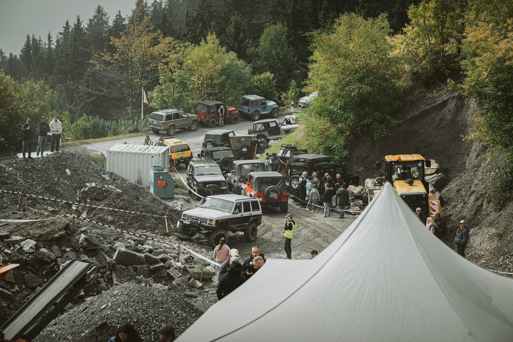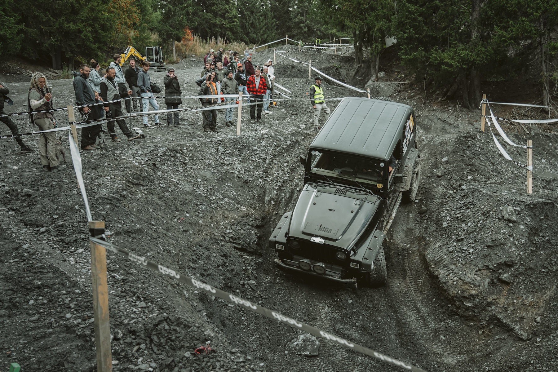 Am Samstagmorgen startet das traditionelle „Jeeping“: eine rund 25 Kilometer lange Tour durchs Skigebiet und die umliegenden Wälder. Dazwischen warten Sonderprüfungen, die es in sich haben – vom Blind-Slalom über steile Kiesgruben bis hin zu Passagen, bei denen man mehr um das eigene Blech bangt als um die Wertung. Wer sich hier einreiht, fährt nicht gegen andere. Er fährt gegen sich selbst.