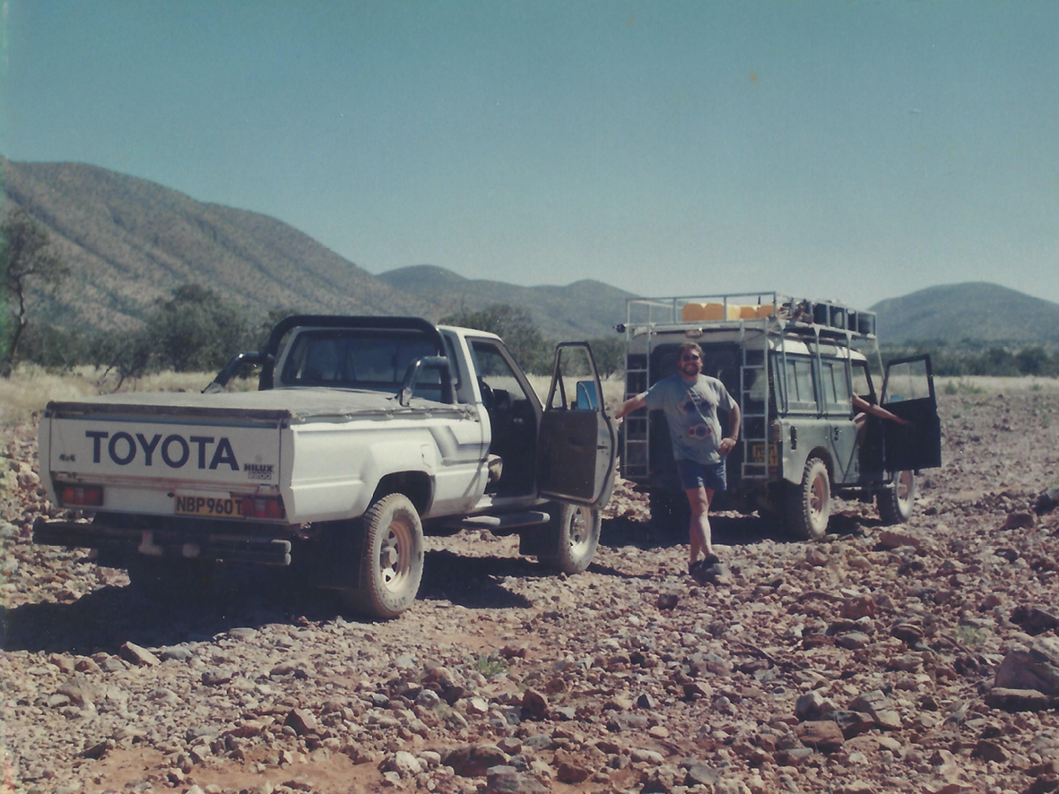 Wir haben Urlaubstage und Ersparnisse zusammengekratzt, um eine 30-tägige Tour zu ermöglichen – mit einem alten Land Rover und einem 4x4 Toyota Pickup durch Namibias entlegenste Regionen. Navigation mit Papierkarten vom „Dept. of Land Affairs“, kein GPS, Tankstopps Tage auseinander, und die einzigen Menschen, die wir trafen, waren Himba-Gemeinschaften.