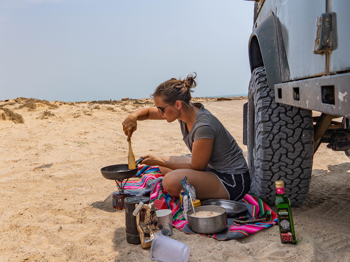 Auf Reisen hatten wir verschiedene Arten von Alltag. Da gab es Fahrtage, an denen wir oft nicht einmal zum Essen angehalten haben. Dann gab es Organisations- oder Reparaturtage. Die sind zwar Teil des Reisealltags, aber so chaotisch, dass sie kaum etwas Repetitives, Alltägliches innehatten. Und dann gab es auch Entspannungs- und Entdeckungstage, wo wir einfach präsent in unserer Umgebung waren.