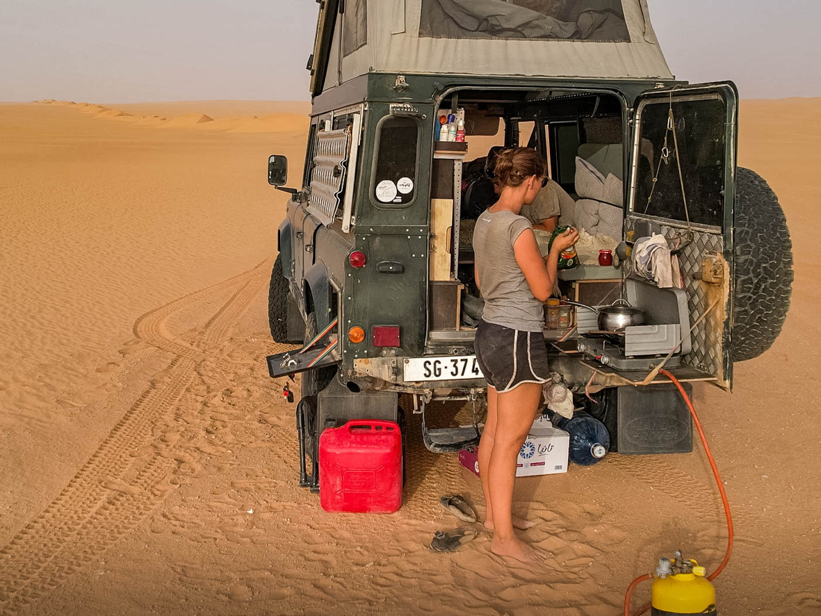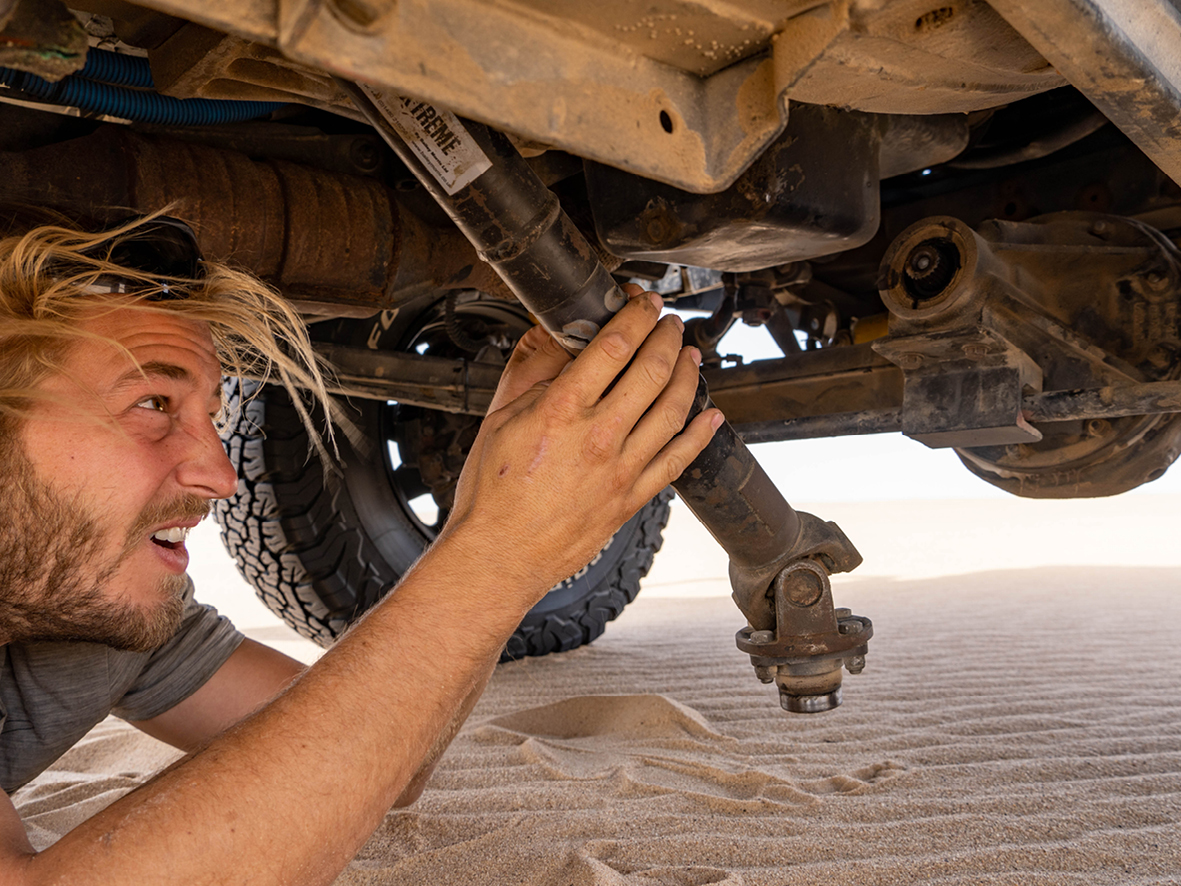 So hat uns beispielsweise ein Brite, der in Saudi-Arabien wohnte, sein Vorderdifferential geschenkt, damit wir weiterreisen konnten. Er war eigentlich auch auf sein Auto angewiesen, hat aber eine andere Lösung gefunden, bis das Ersatzteil bei ihm war.