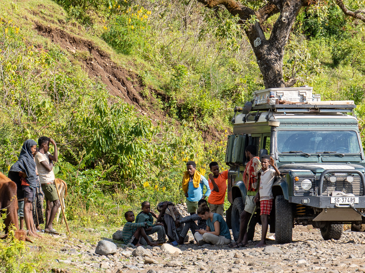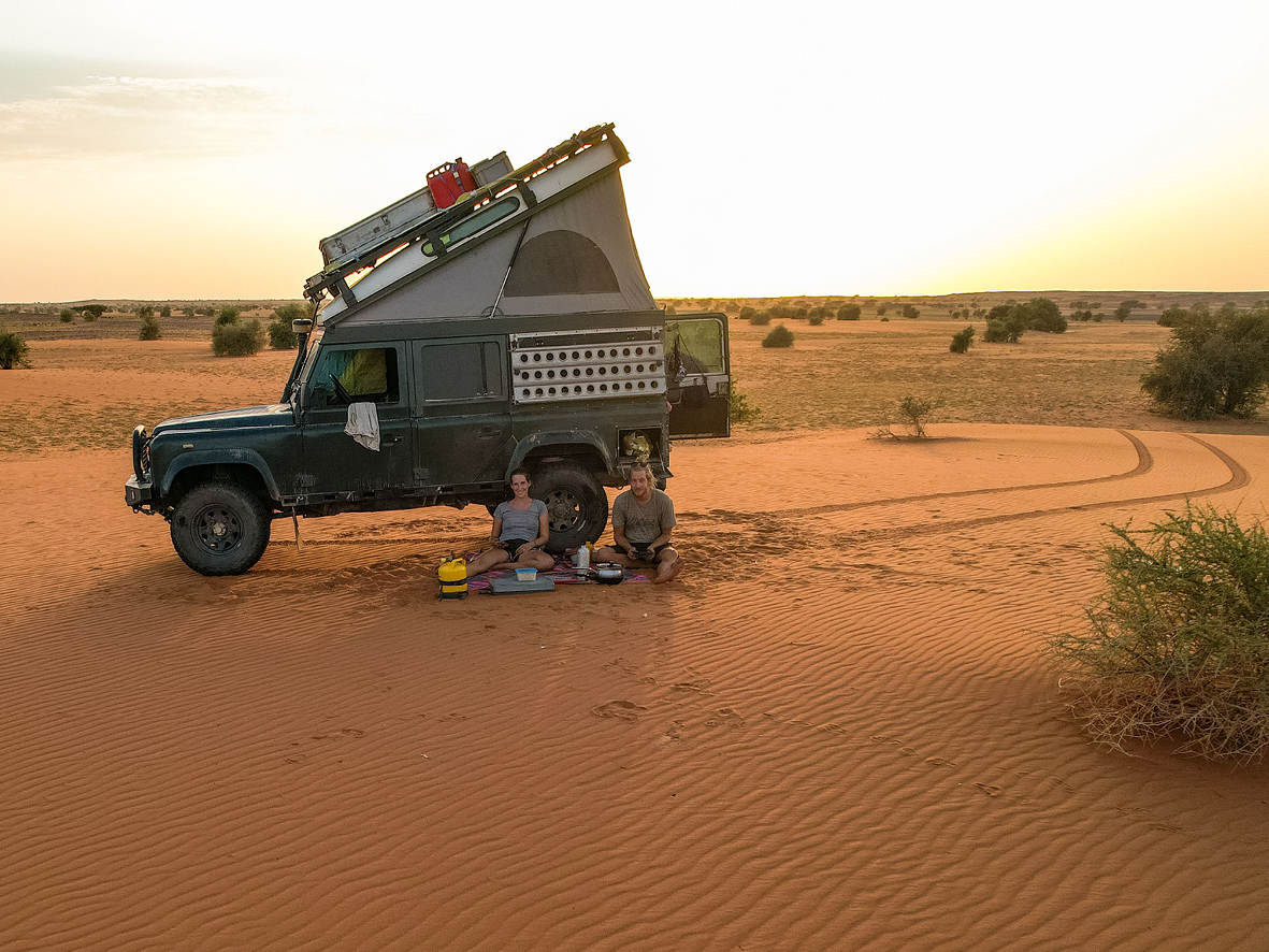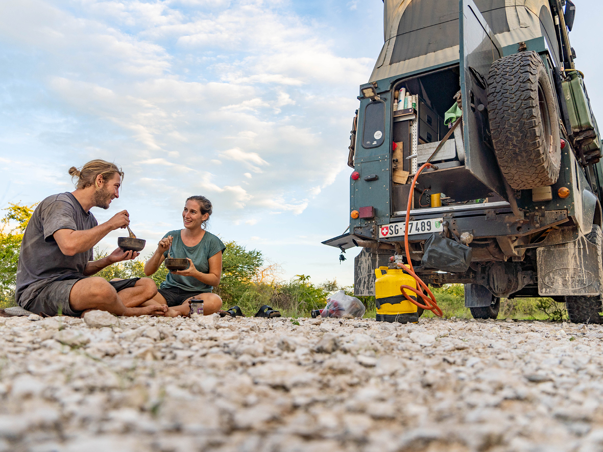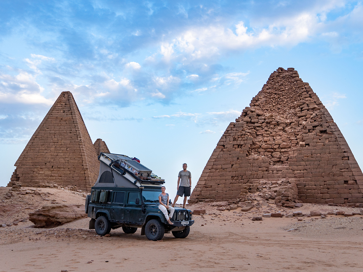 Wir sind Toby und Martina, ein Schweizer Ehepaar mit einem alten Land Rover Defender. Für 2,5 Jahre waren wir unterwegs – im Nahen Osten und in Afrika. Seit 2023 sind wir wieder zuhause, da unser erster Sohn geboren wurde. Mittlerweile haben wir zwei Kinder und einen Hund.