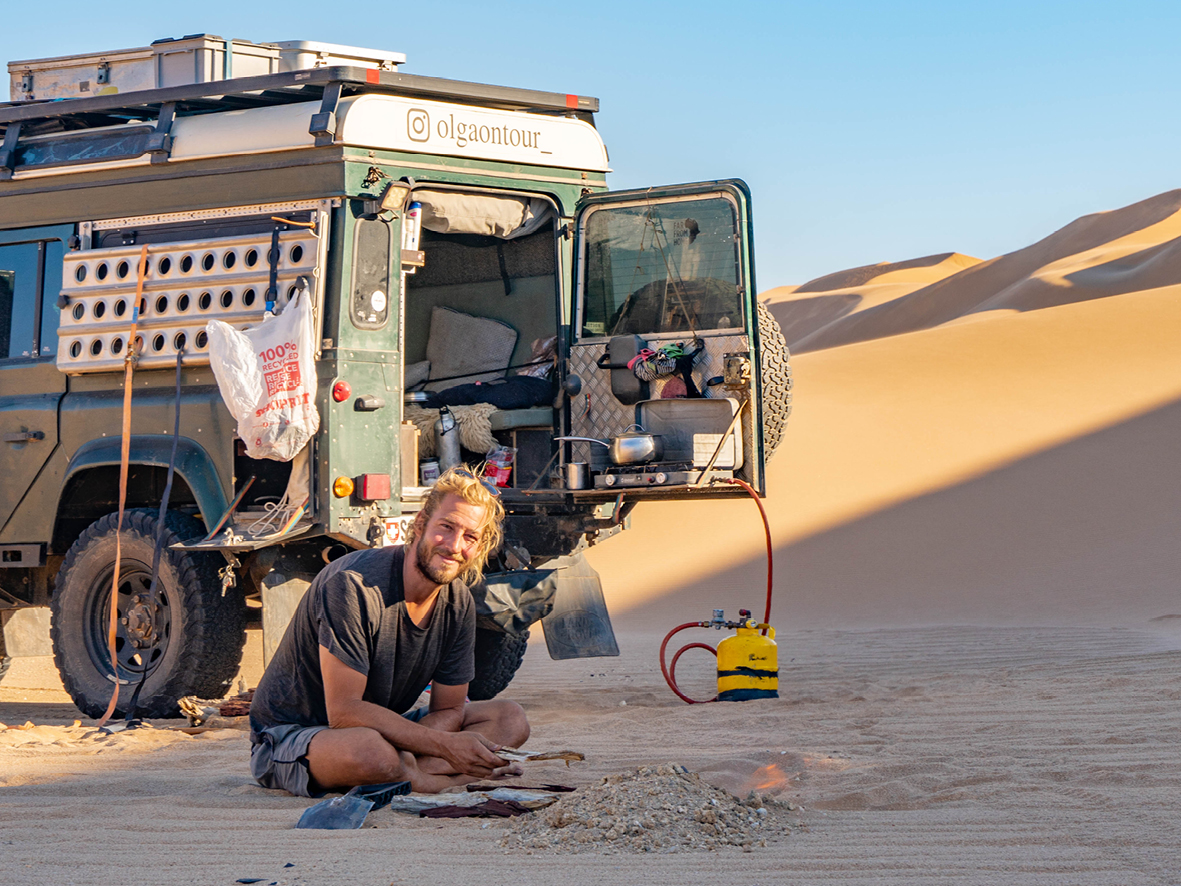 Wir wurden Teil der Werkstatt, haben jede Nacht im Auto oder auf dem Werkstattboden übernachtet, mit den Leuten Tee getrunken, zusammen gekocht – und Toby hat viel über Defender gelernt. Jeden Tag kamen neue Fahrzeuge rein, die repariert werden mussten, und Toby hat mitgearbeitet. Dieses Wissen konnten wir auf der weiteren Reise sehr gut gebrauchen.
