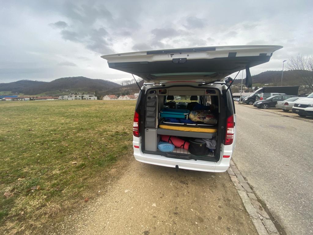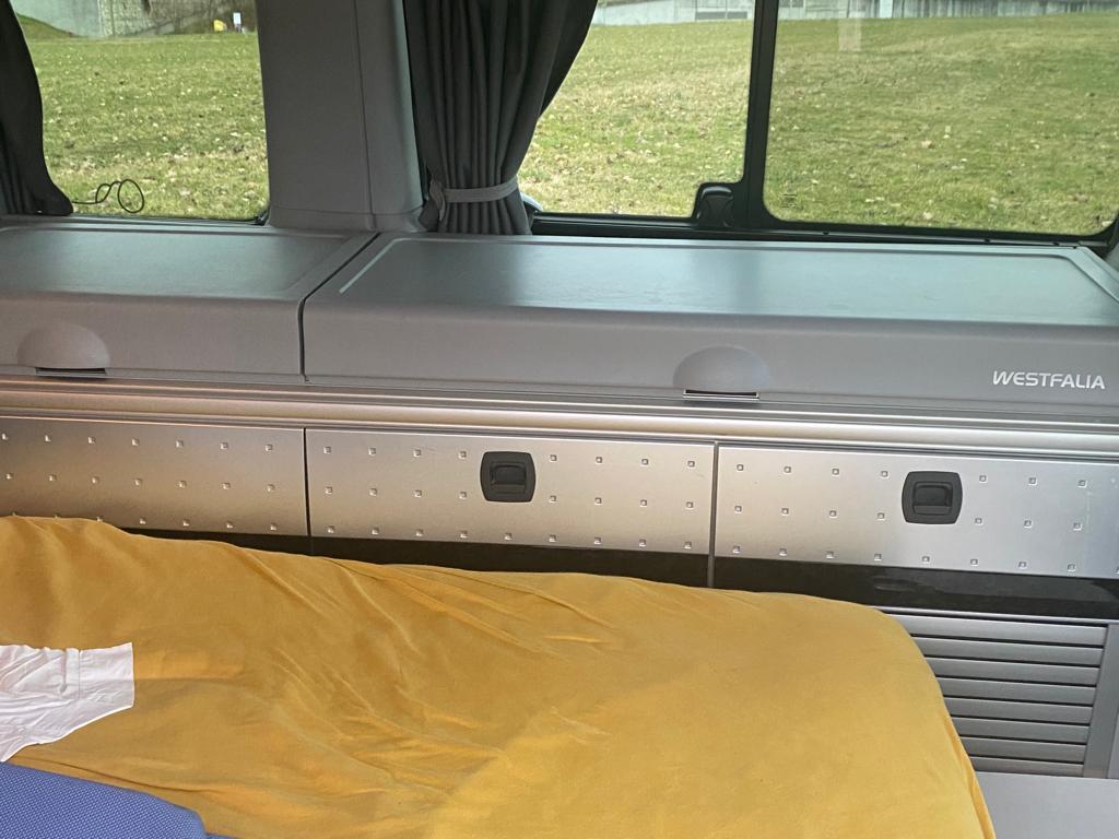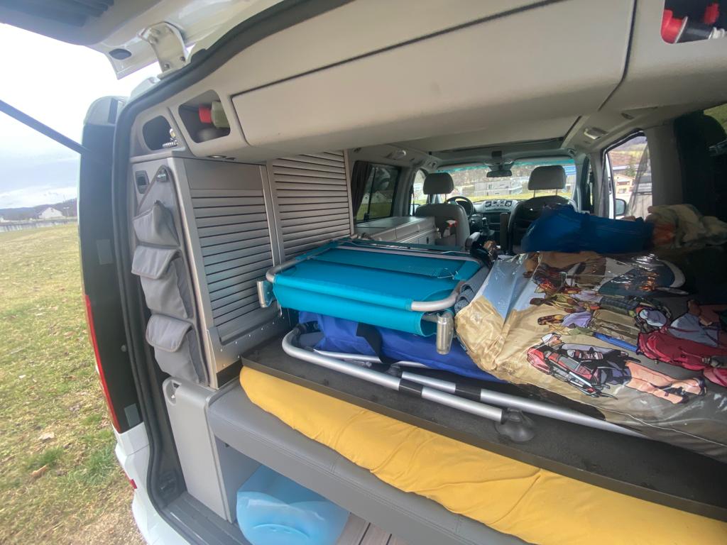 93’000 km, Jahrgang 2011, ab MFK (letzte Prüfung 28.05.2020), Diesel, Hinterradantrieb, Automat, Anhängerkupplung, 224 PS. Er ist 5m lang, 1.9m breit und 1.96m hoch. Er hat 4 Sitz- und Schlafplätze (2 unten und 2 oben beim Aufstelldach), eine Boardküche inkl. Kühlschrank, Standheizung, eine neue stabile Markise (2021),  die auch etwas Wind aushält, eine neue starke Batterie (2022), gute extra zugekaufte Matratzen oben. Zu verkaufen mit verschiedenem, zum Bus passenden Zubehör (Fliegennetz für alle Türen, Heckzelt, um den Wohnraum hinten zu vergrössern, …). Besonders gefallen hat uns, dass er gut zieht und einen robusten Innenausbau hat – da geht nichts so schnell kaputt. Ein toller Bus einfach zum Geniessen!
