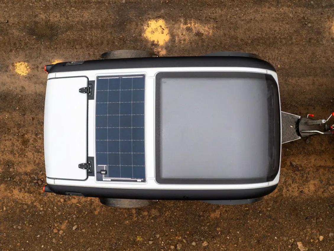 The clear design follows the principle of "less is more". The interior creates a sheltered retreat with well thought-out equipment, while the open-air kitchen and panoramic roof deliberately maintain the connection to the outside. The MINK-X combines minimalist travel with comfort and year-round usability.