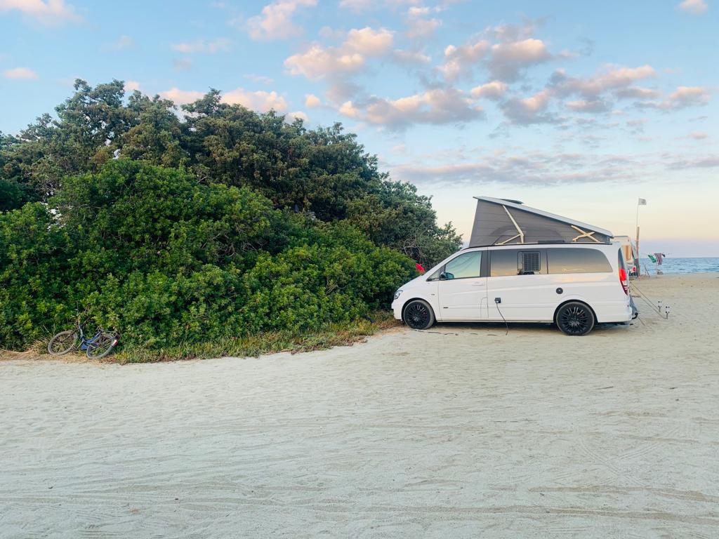- Roof tent with proper mattress and directly connected side tent, with direct access to the "closet". Further extension options (e.g. Kids Room)
