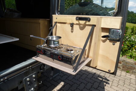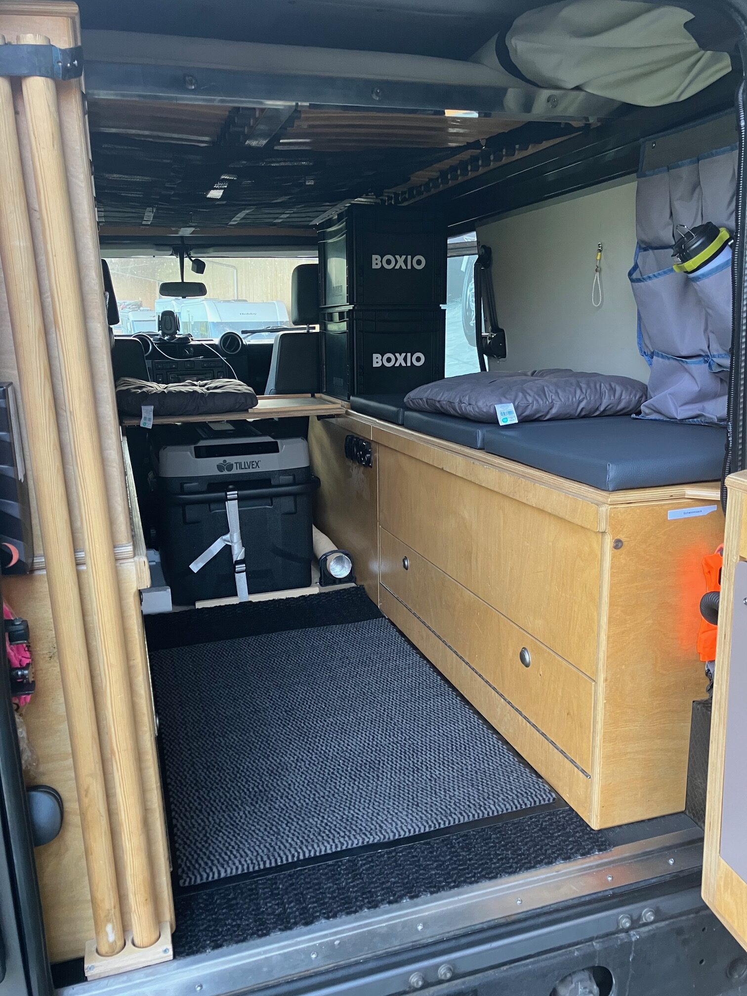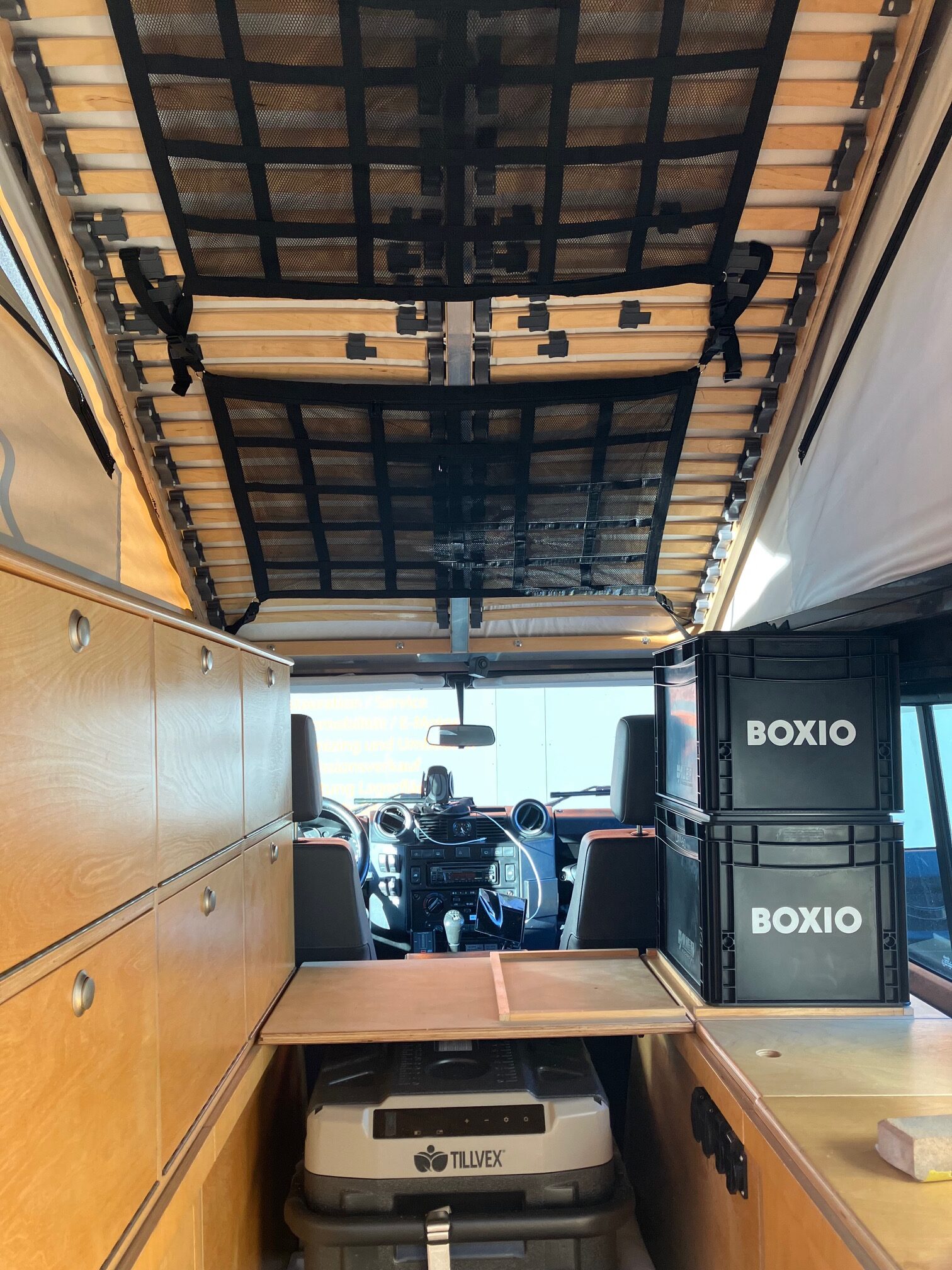- Transformation du toit relevable Landycamper avec 2 places de couchage, 2 fenêtres latérales et fenêtre arrière