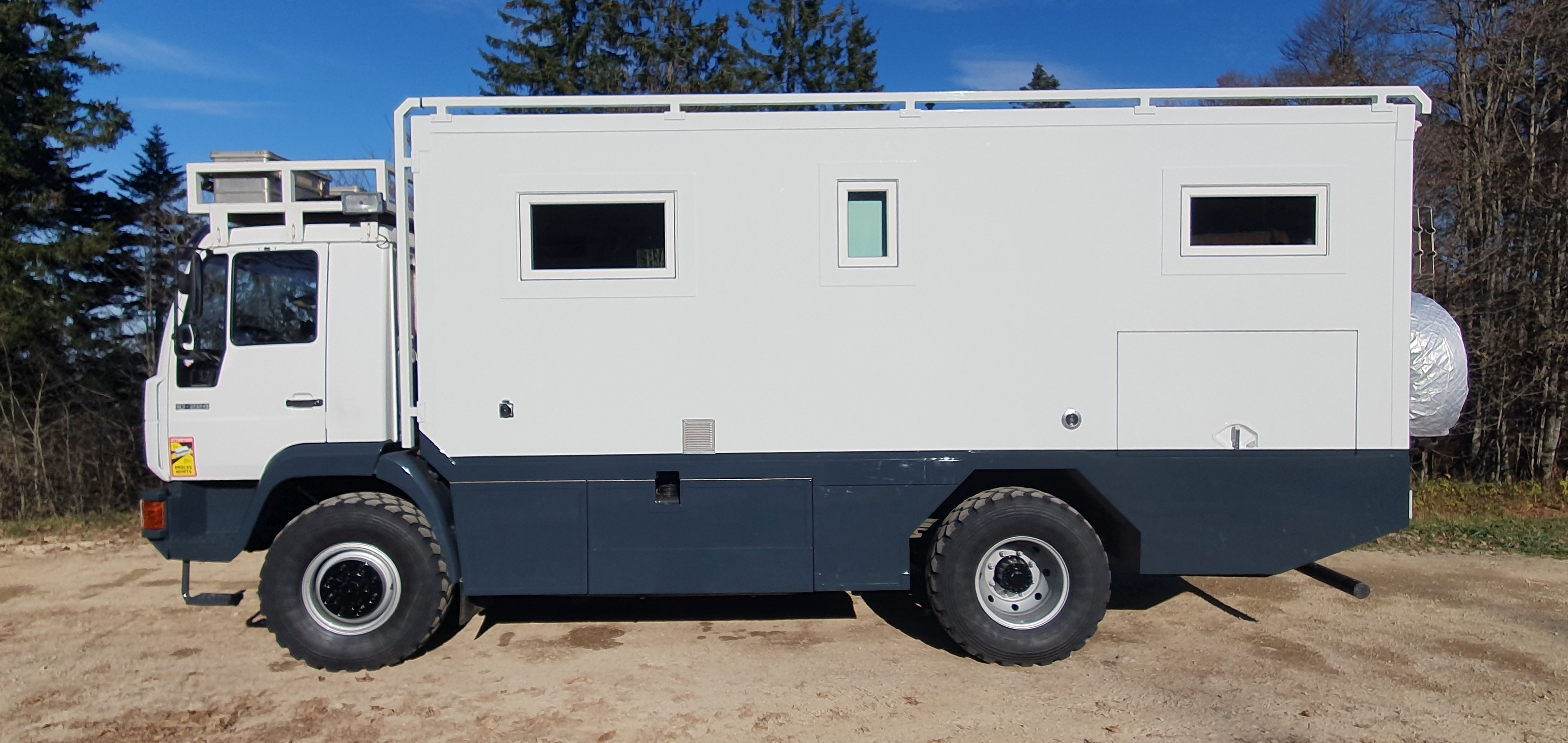 Questo è un veicolo da spedizione di prim'ordine per esigenze elevate di qualità, comfort e autosufficienza. Il veicolo, costruito nel 2001, è stato ampiamente revisionato e riverniciato nel 2011 e nel 2024. L'equipaggiamento è in buone condizioni e funziona perfettamente. Il chilometraggio è di 255.000 chilometri. Ubicazione e immatricolazione attuale: Svizzera.