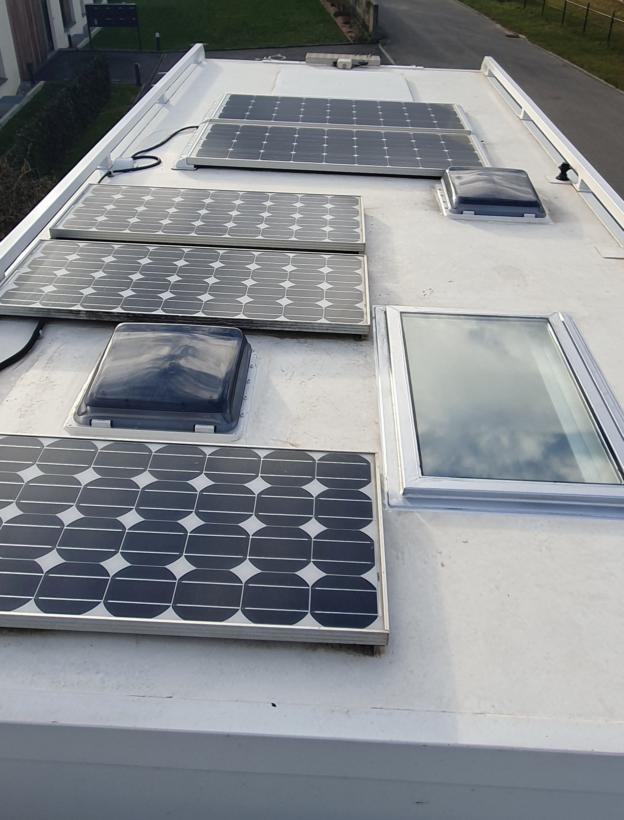 225 Wp con regolatore Votronic MPP 350 W, totale 525 Wp (anno 2015)Inverter sinusoidale Mastervolt 12V/230V, 2000W (anno 2011)