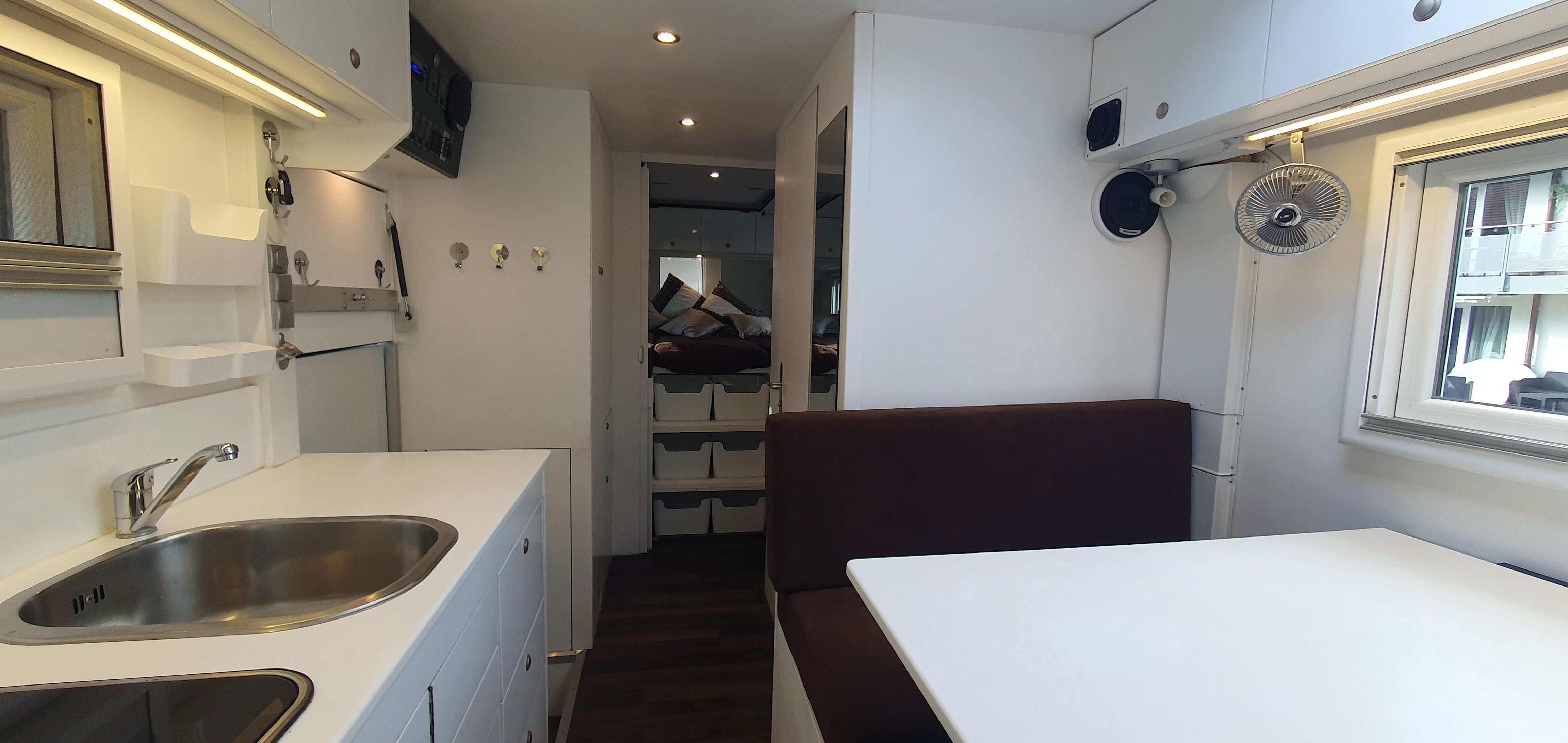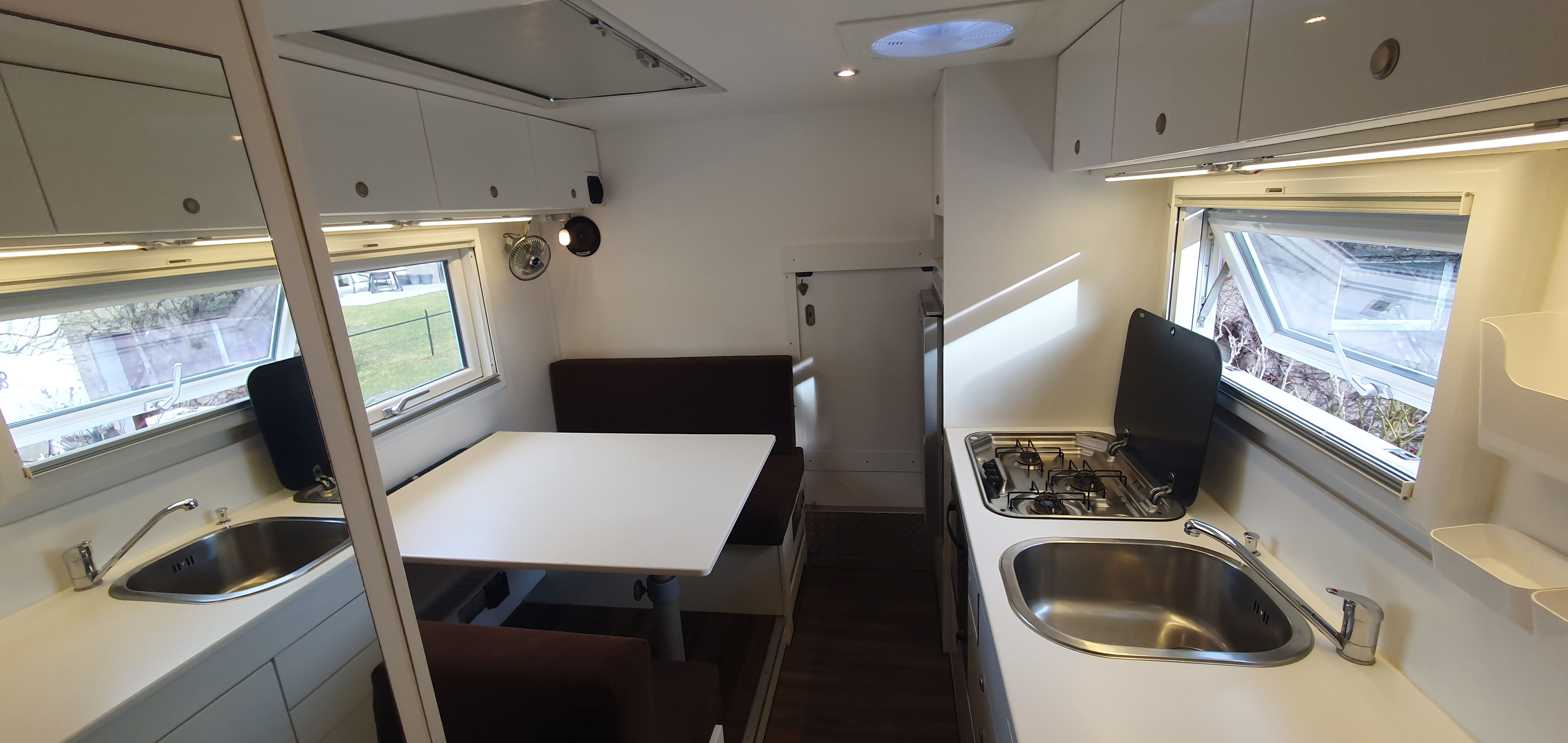 Rivestimento dei sedili in Alcantara (2012, condizioni pari al nuovo) con dinette (la zona salotto e il tavolo possono essere trasformati in letto)