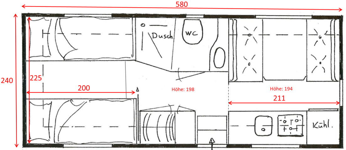 Lunghezza: circa 820 cm (comprese le ruote di scorta), larghezza circa 240 cm, altezza circa 355 cm