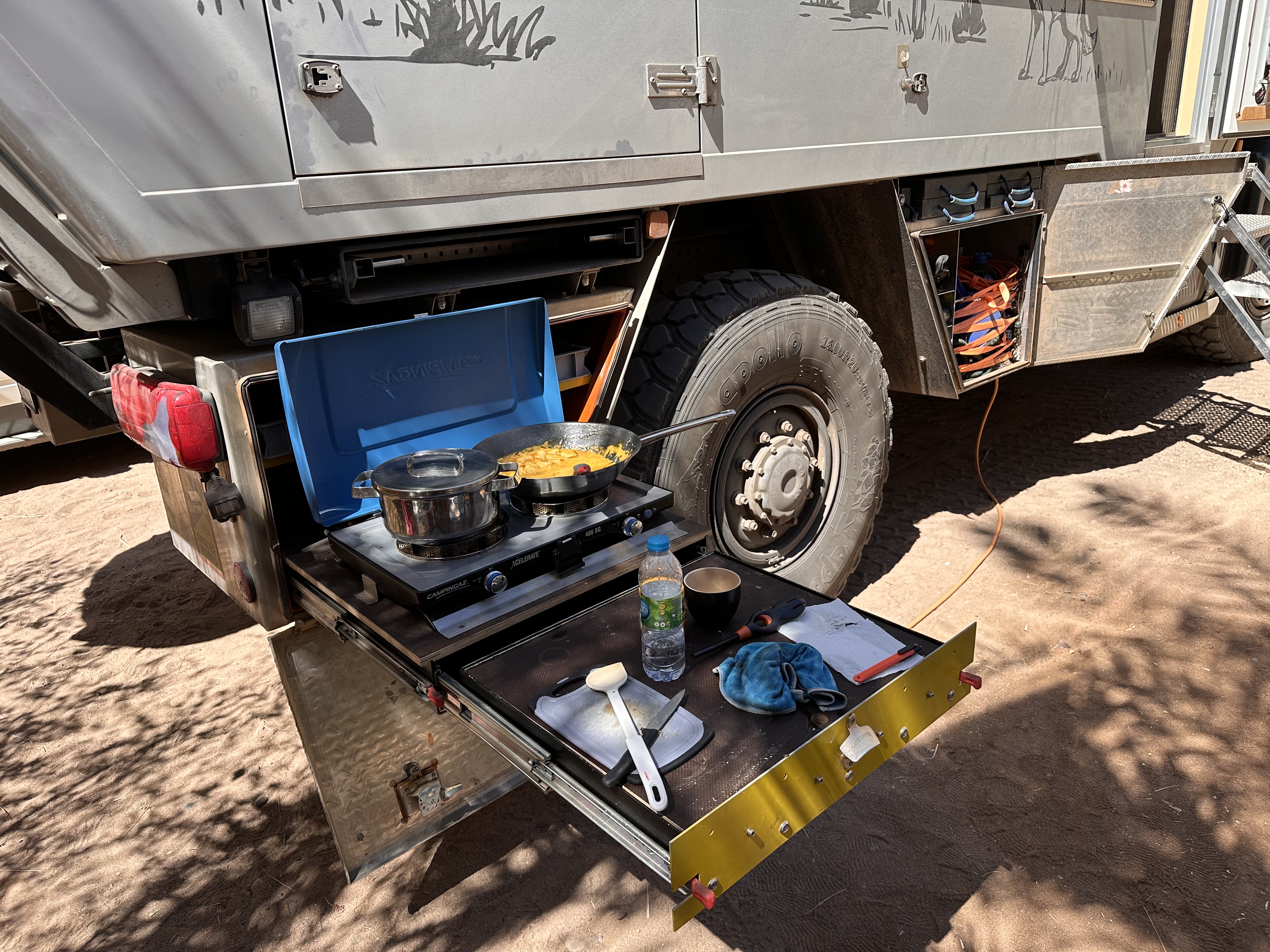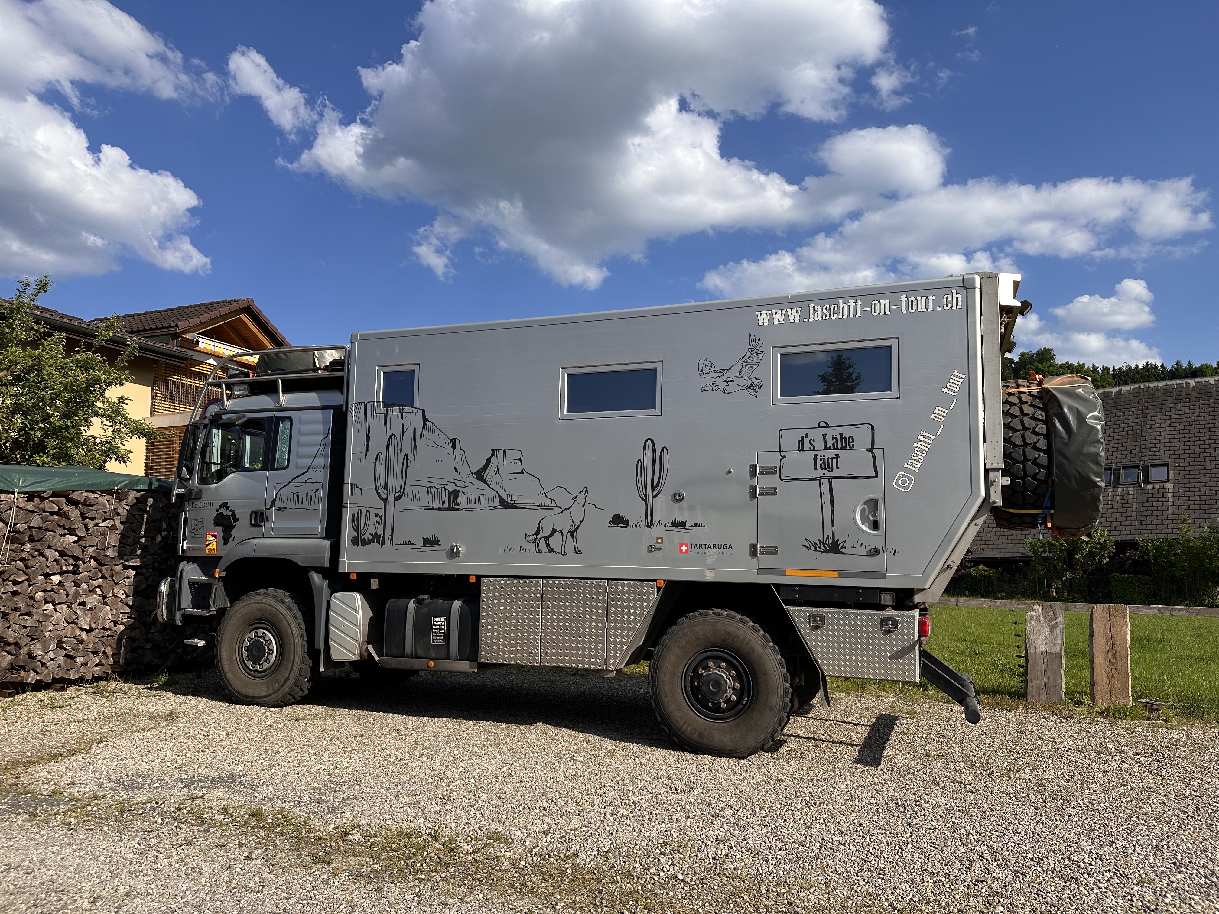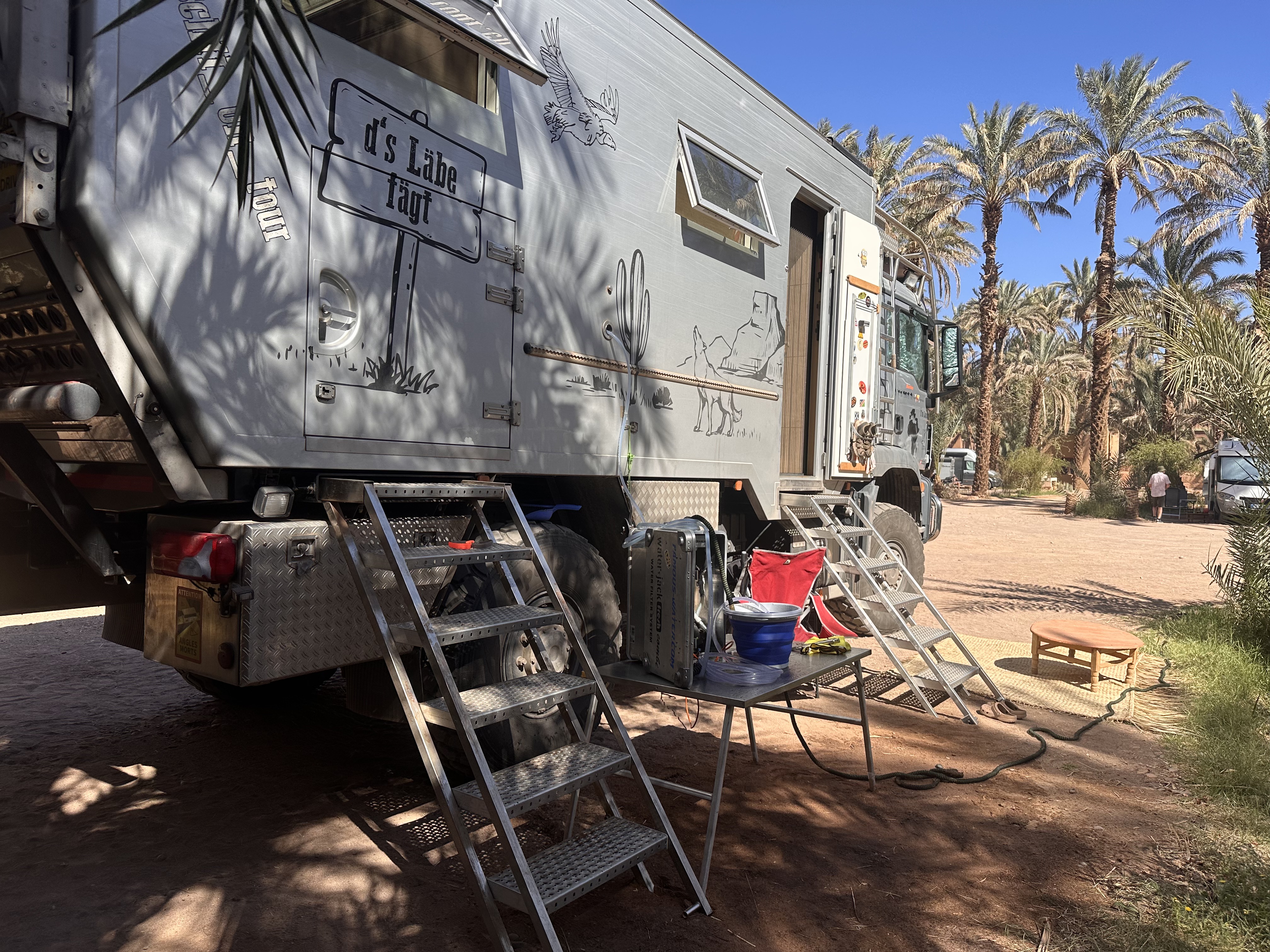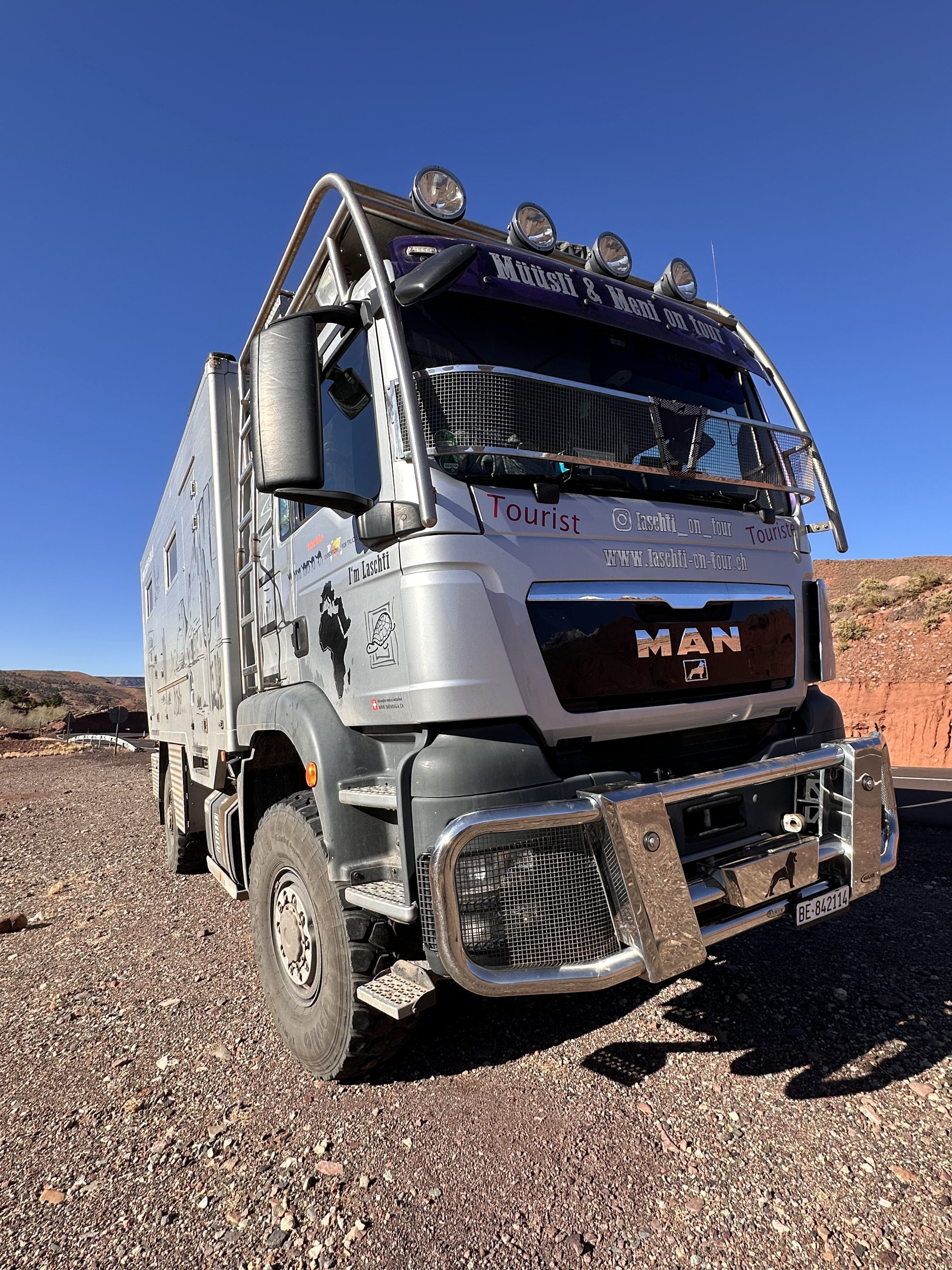 Questo veicolo è incredibilmente affidabile. Sebbene sia un'assoluta attrazione, non è certo un veicolo da esposizione. Abbiamo fatto due grandi viaggi con questo veicolo da viaggio. L'ultimo ci ha portato da Città del Capo alla Svizzera. Ci siamo resi conto più volte di quanto questo camper sia davvero ben congegnato.