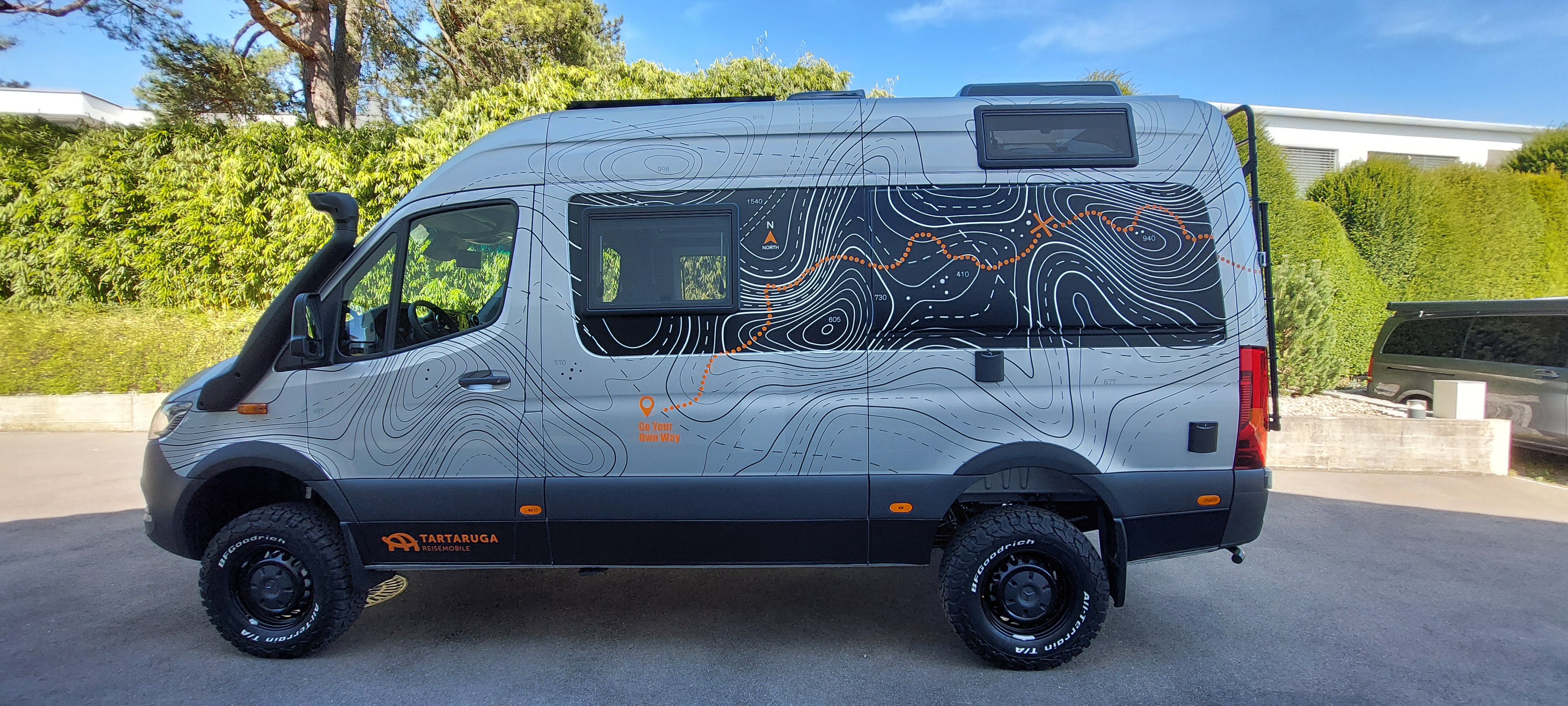 Conversione interna del veicolo base da parte di CS-Reisemobile, Germania; retrofitting off-road da parte dell'importatore e distributore unico TARTARUGA AG, Svizzera.