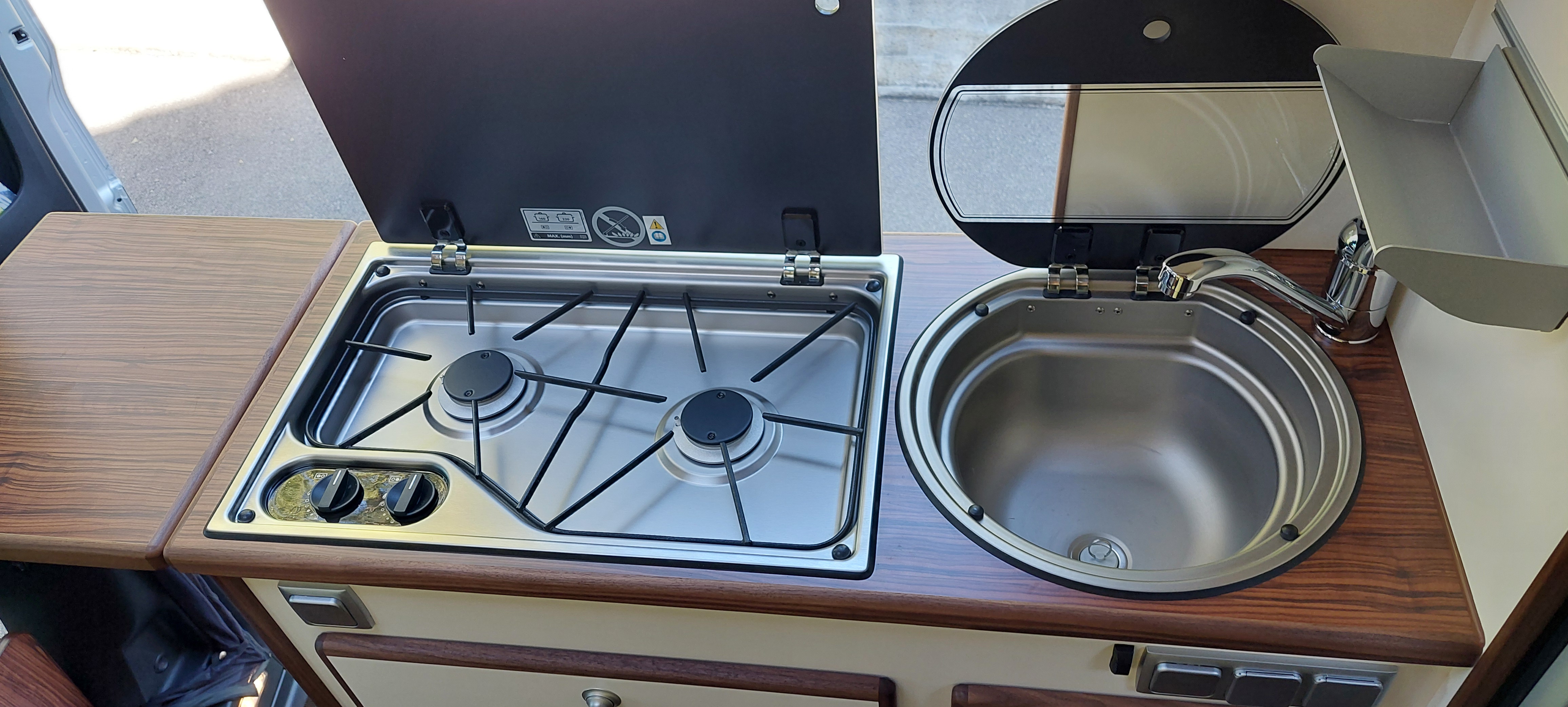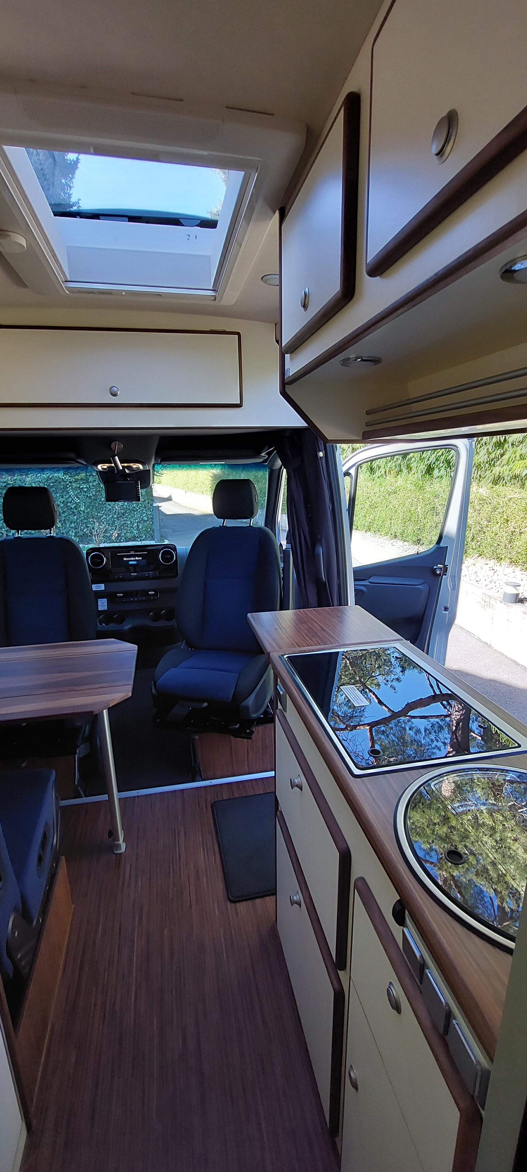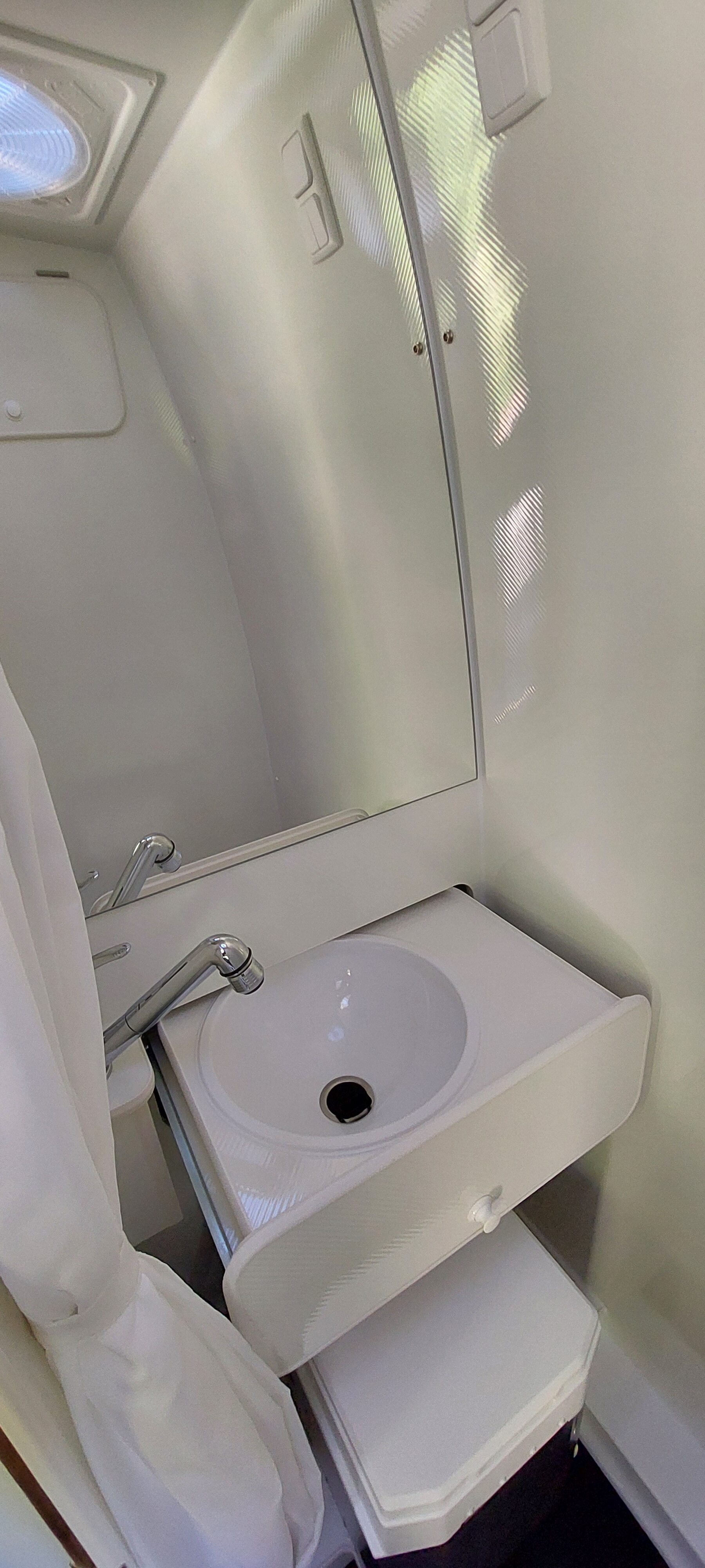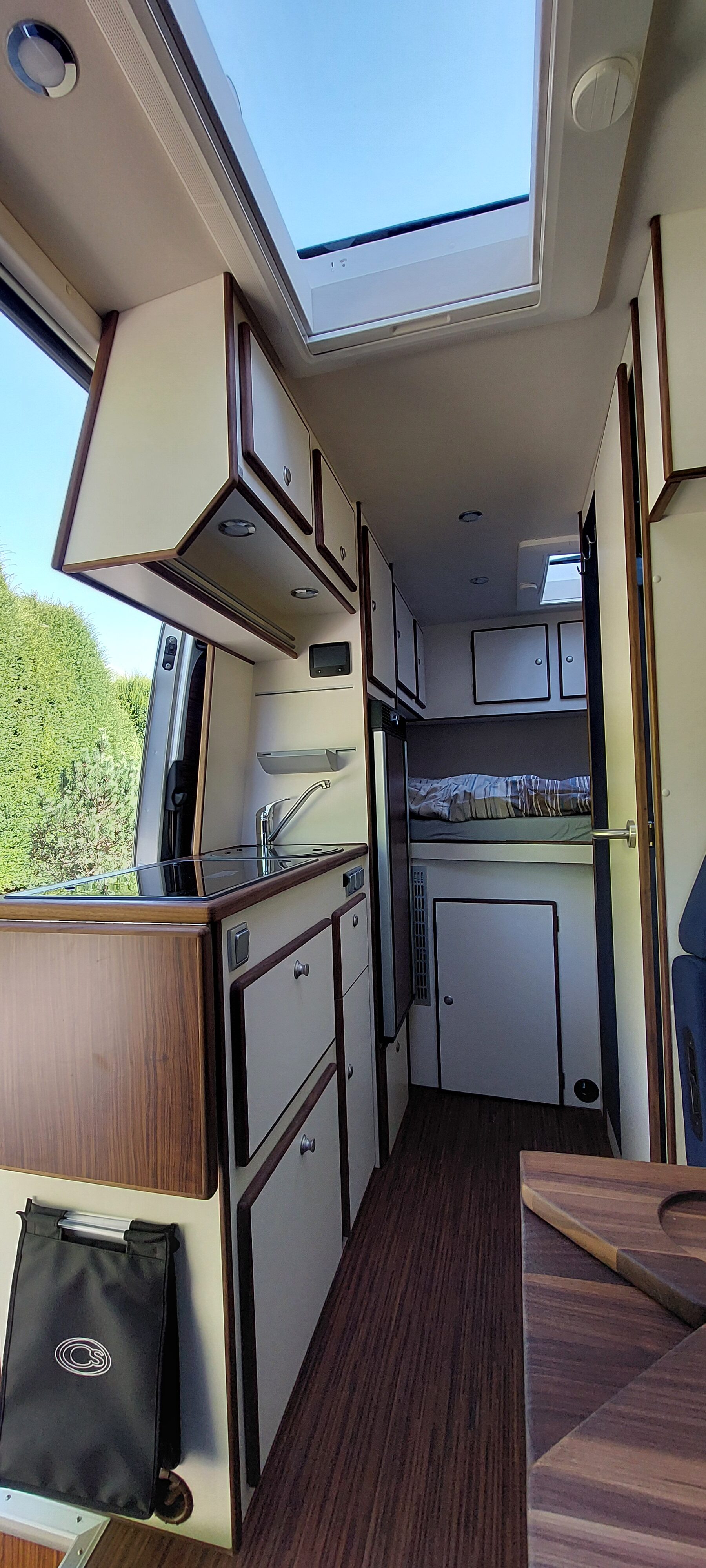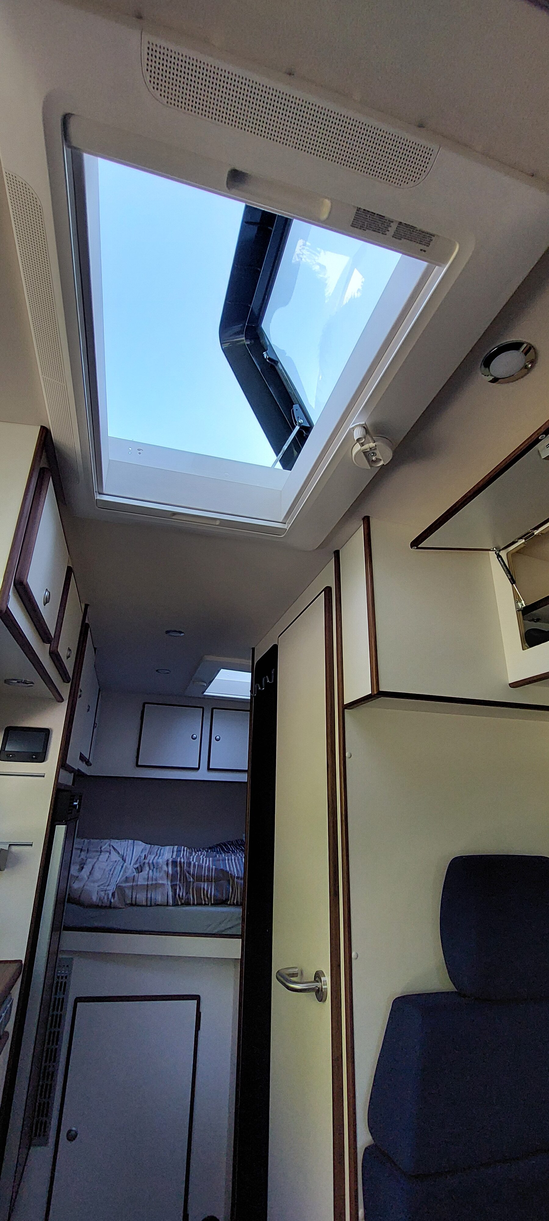 - Letto trasversale 1,93 x 1,40 m, 2 grandi botole sul tetto, ventilatore a cella umida 40x40 cm, toilette a separazione secca BioTol RL