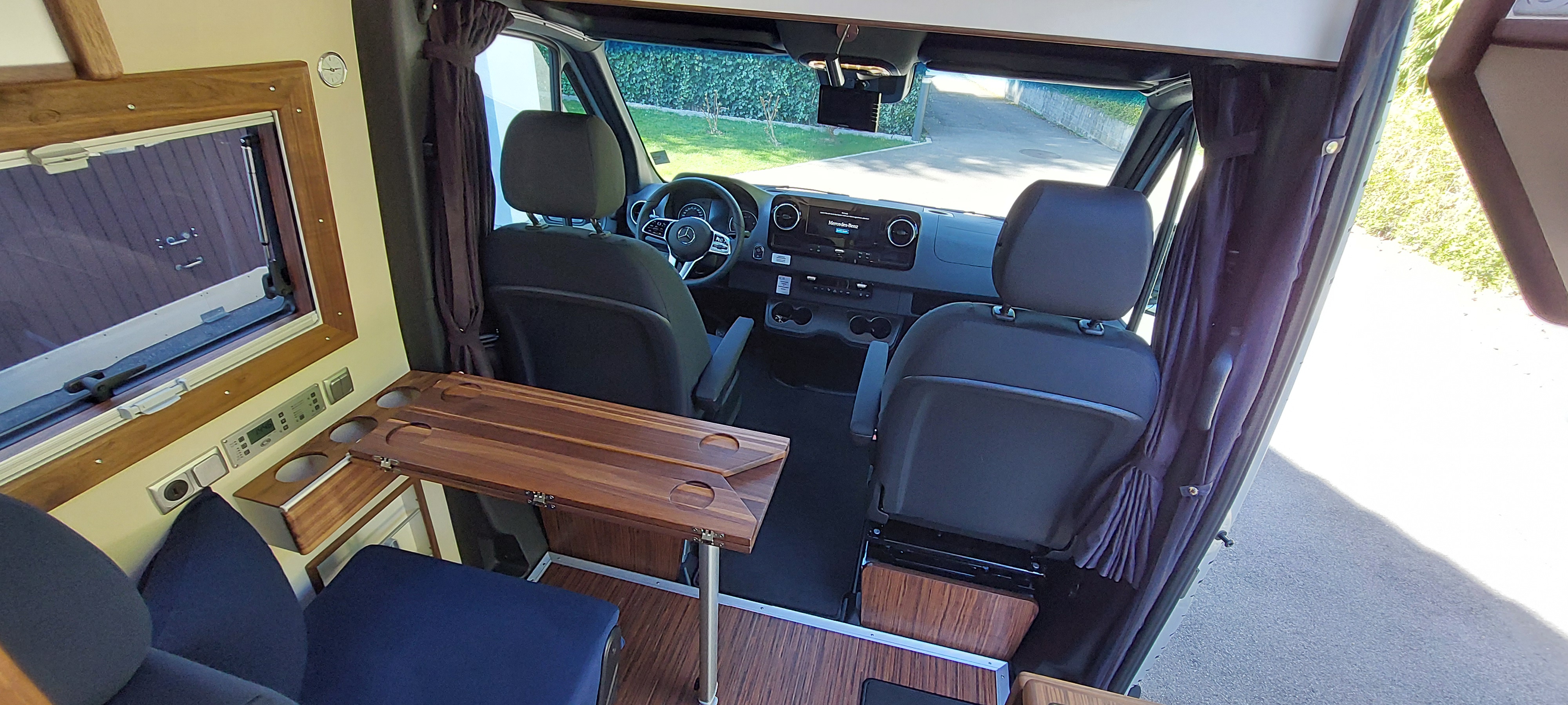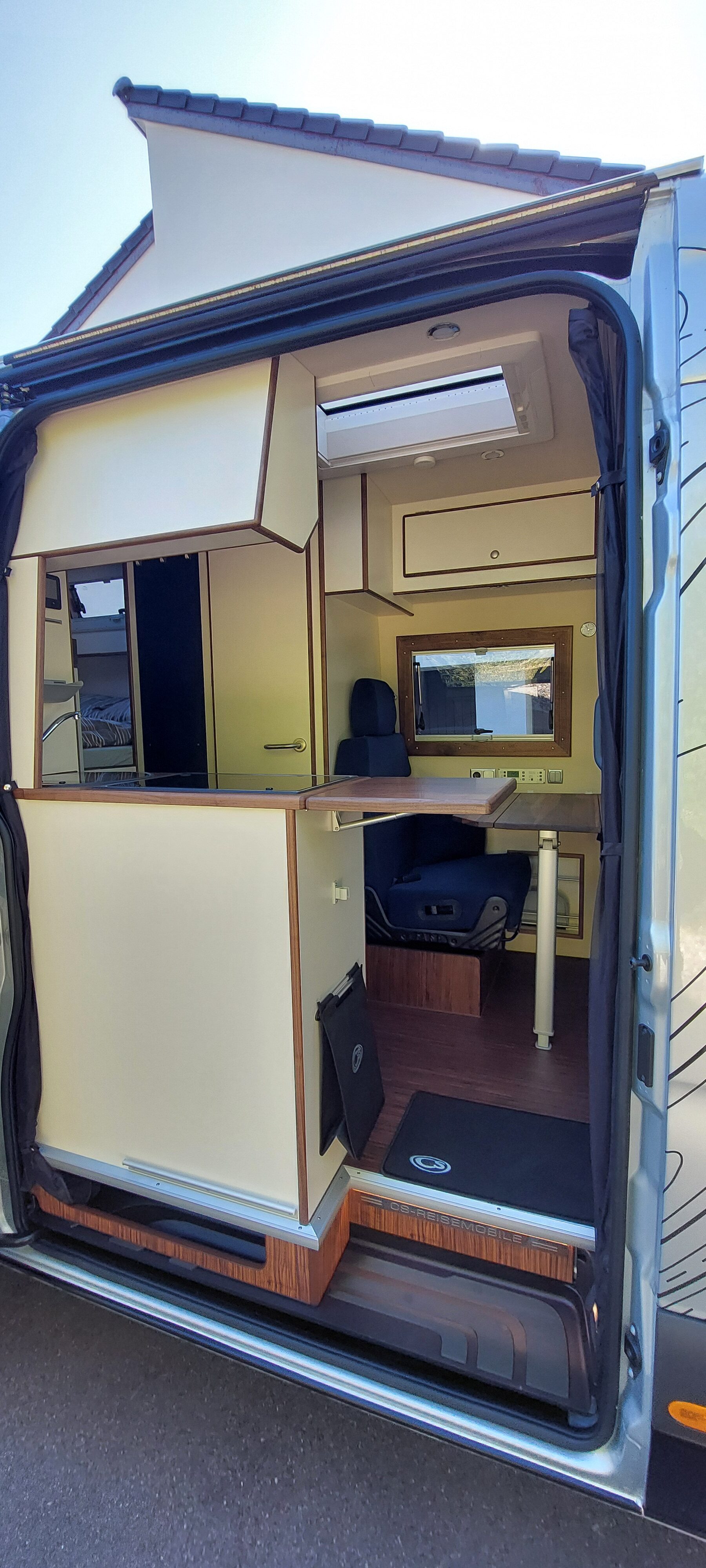 Il modello compatto Independent offre spazio sufficiente per 2 persone su una lunghezza esterna di 6,0 metri. Il letto trasversale fisso nella parte posteriore misura circa 1,95 m x 1,42 m (circa 1,20 m all'estremità dei piedi), con un ampio vano portaoggetti posteriore. C'è una doccia/WC, una cucina, un tavolo e posti a sedere per 3 persone. Come suggerisce il nome, con l'Independent si è molto indipendenti. Grazie alla batteria al litio e al relativo impianto solare ben dimensionato, il veicolo può essere utilizzato in modo autosufficiente e lo Sprinter con il nuovo sistema di trazione integrale torque-on-demand può viaggiare anche molto lontano dai sentieri battuti grazie alla sua buona altezza da terra.