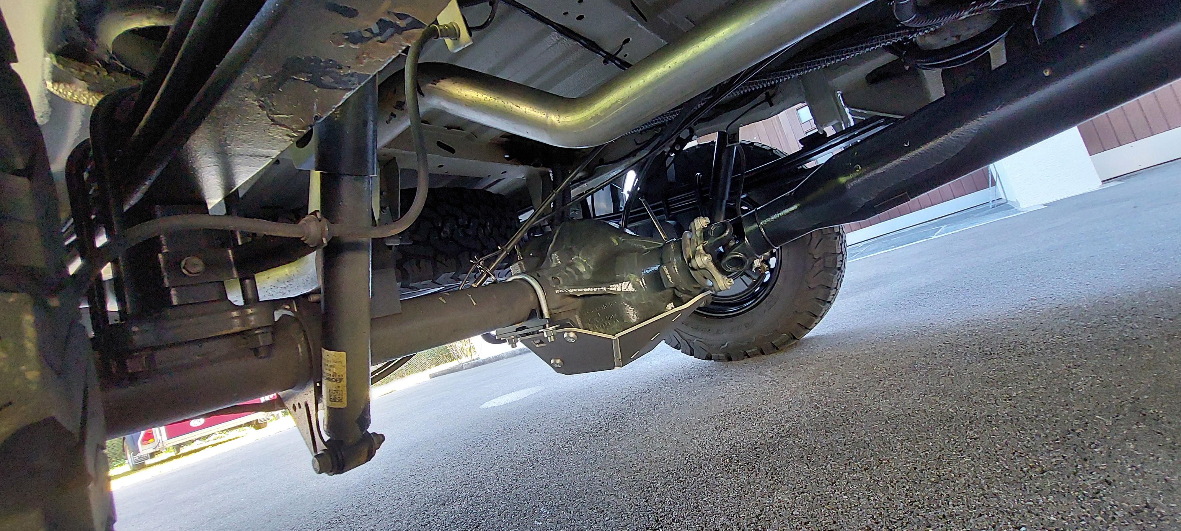- Porta ruota di scorta adattato, protezione antincastro, spoiler sul cofano, scaletta sul tetto, piastra di base X-Bull con supporti Maxtrax, tavole di sabbia Maxtrax, clacson a due suoni più forte, rialzi sulle bocchette di alloggiamento, ecc. (elenco dettagliato durante l'ispezione/documentazione).
