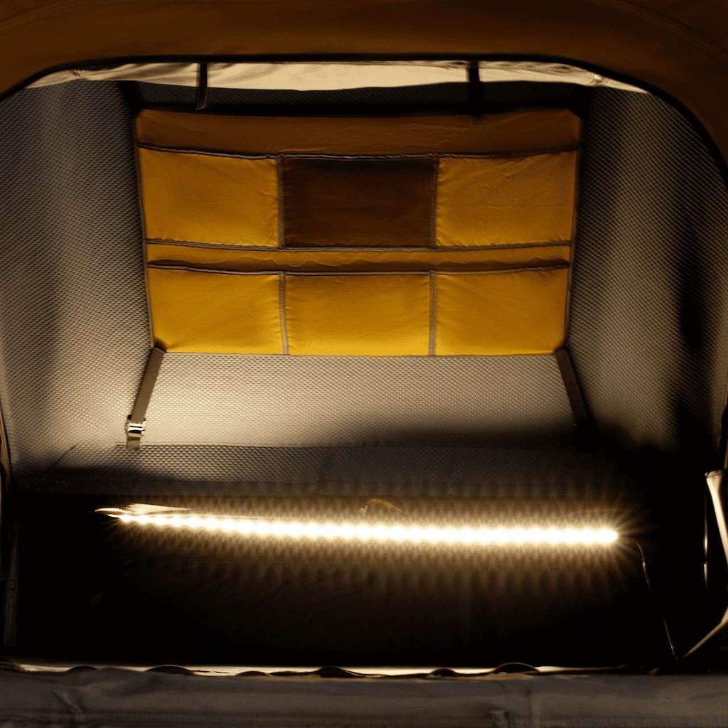 MerkmalBeschreibungZelttypHybrid-DachzeltSchlafplätze2–3 PersonenLiegefläche140 × 210 cmGewichtca. 85 kgUnterdeckWabenförmiges Aluminium mit ExoskelettOberschaleABS mit Line-X BeschichtungRahmenAluminiumZeltstoffPolycottonInnenraumBLACKOUTBeleuchtungIntegrierte LEDMatratzeAntikondensationsmatratzeInsektenschutzIntegrierte MoskitonetzeGanzjahrestauglichJa