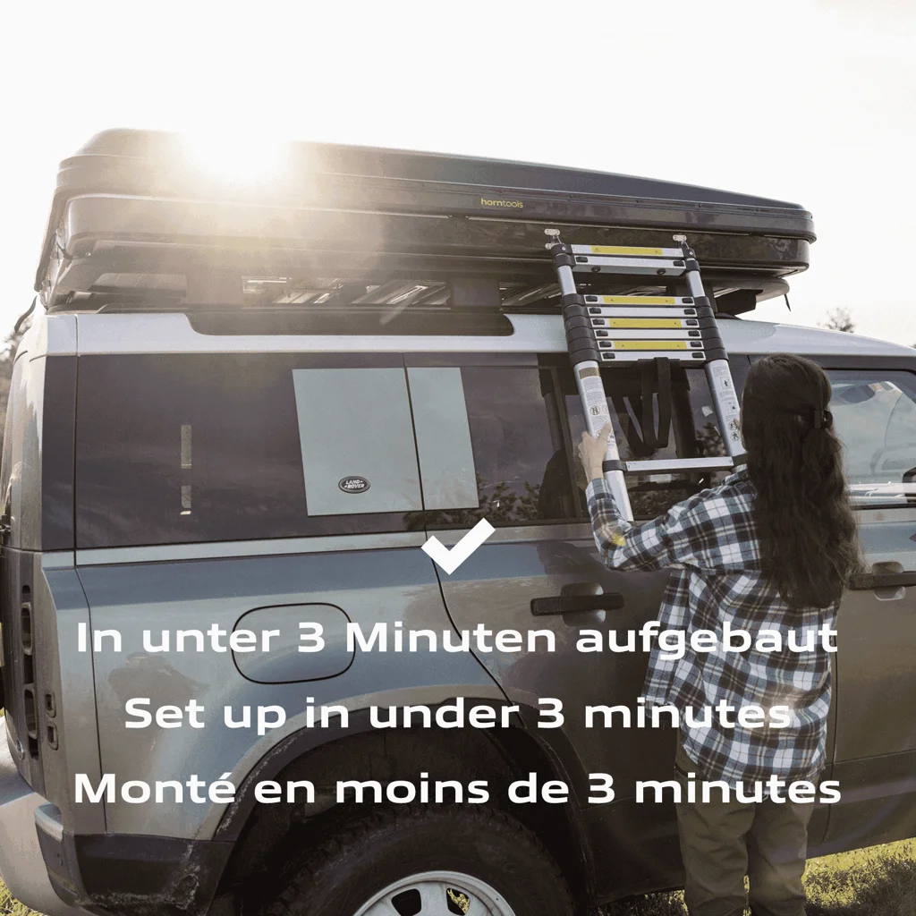 Das Hartschalen-Dachzelt Themis PopUp von Horntools überzeugt Camping-Fans mit einem blitzschnellen Aufbau, hoher Robustheit und maximalem Komfort. Die widerstandsfähige ABS-Hartschale ist nicht nur leicht, sondern auch sehr stabil und wetterfest. In weniger als drei Minuten steht Dein mobiles Zuhause bereit für jedes Abenteuer.