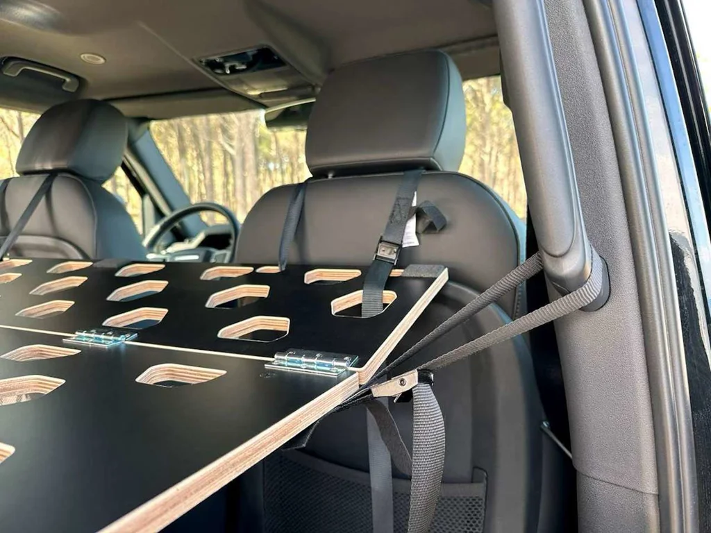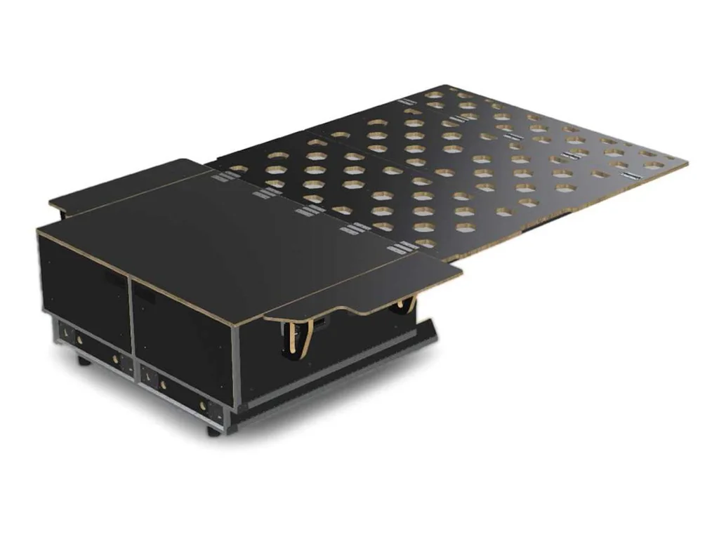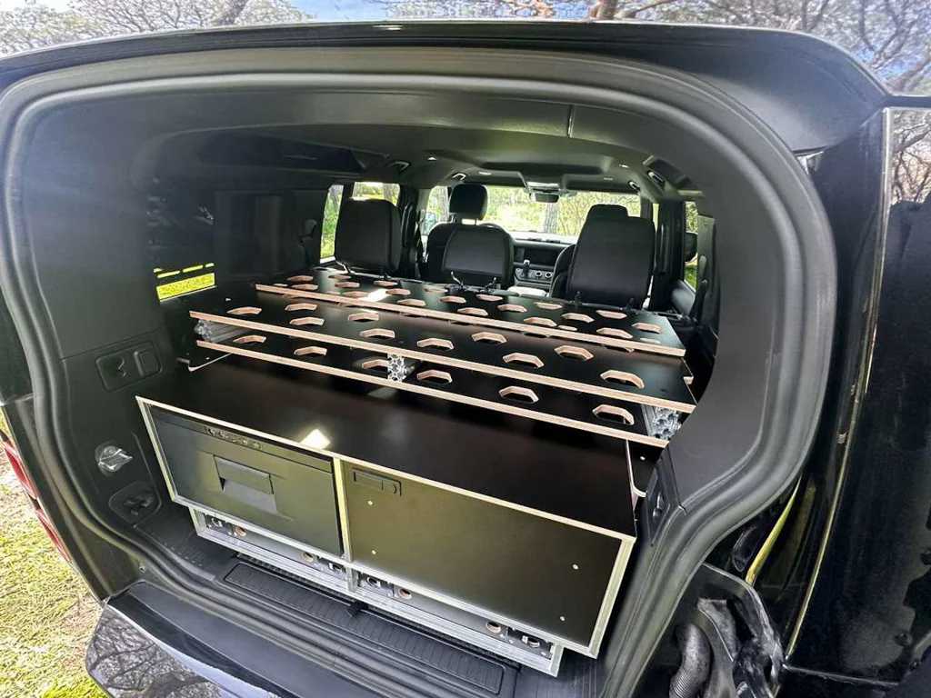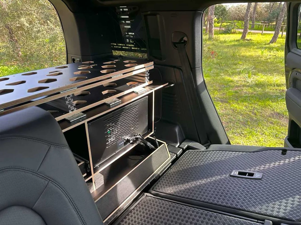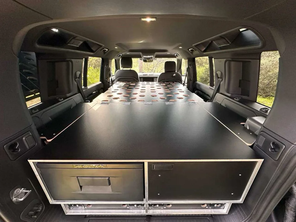Entdecken Sie das modulare Möbel- und Schlafsystem für den Land Rover New Defender 110 – die perfekte Kombination aus Funktionalität und Komfort für Ihre Abenteuer. Dieses System bietet eine großzügige Schlaffläche und eine geräumige Heckbox, die den Stauraum Ihres Fahrzeugs optimal nutzt. Im verstauten Zustand bleiben bis zu fünf Sitzplätze erhalten, sodass Sie auf Reisen flexibel bleiben.
