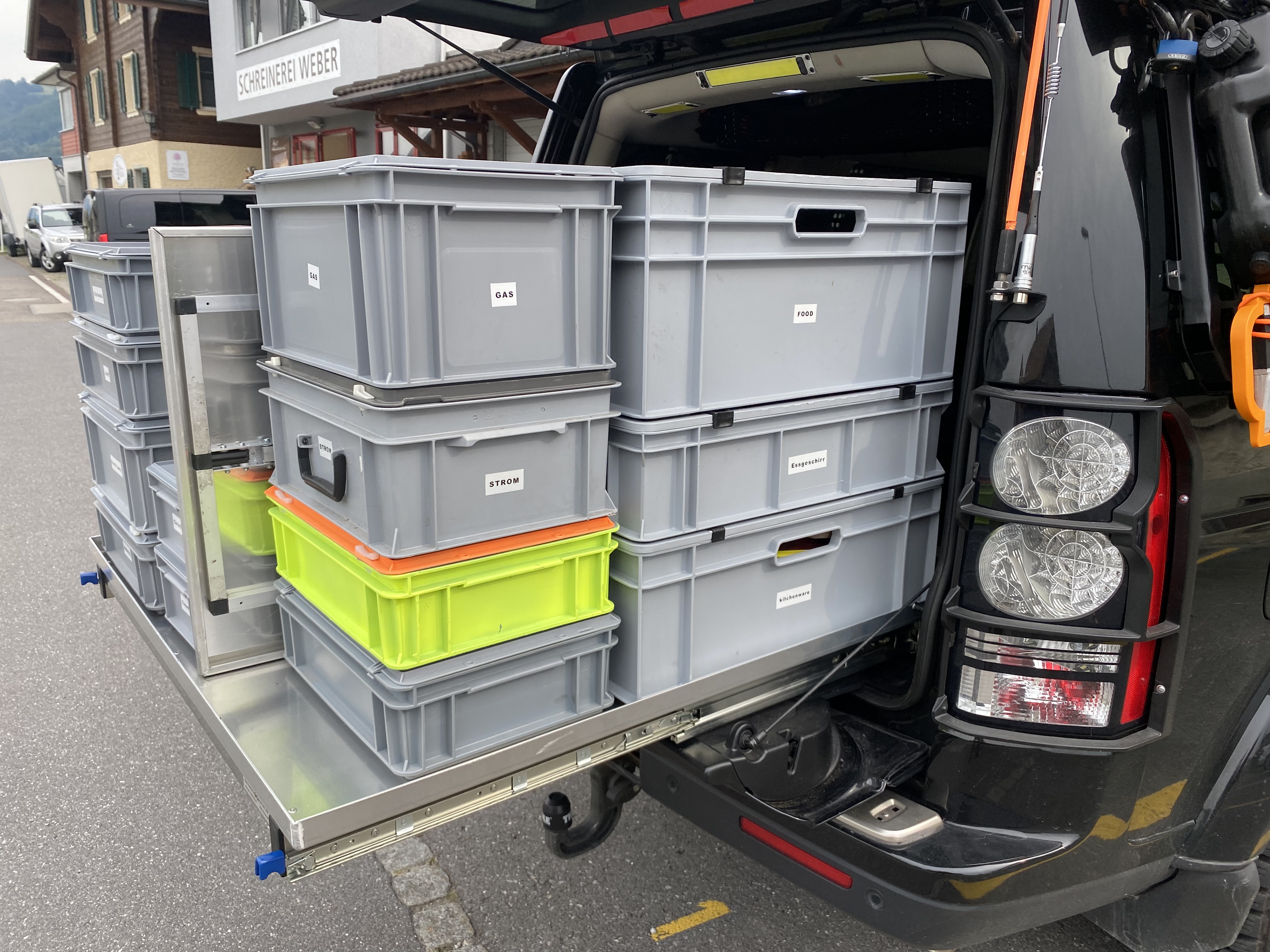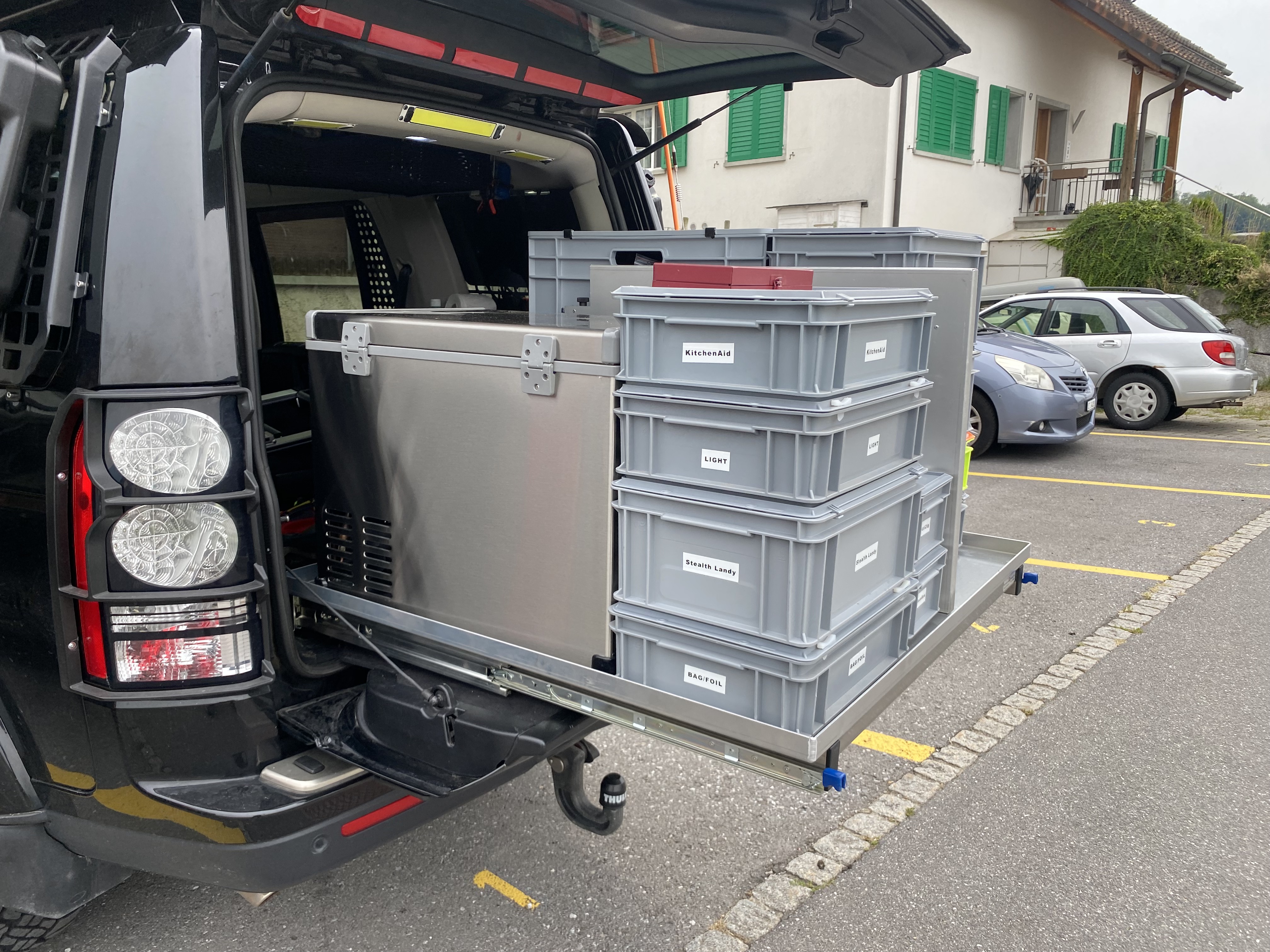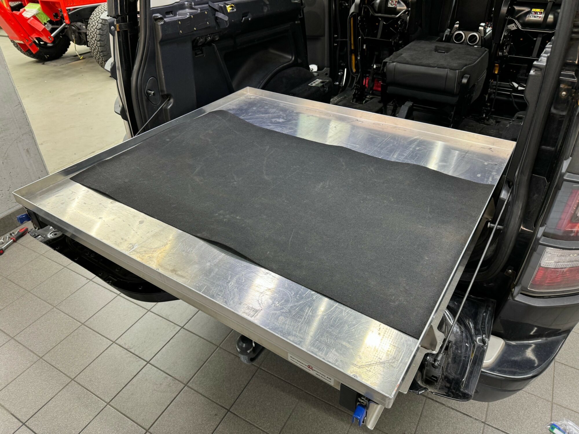 NEUPREIS 2800.- CHF Schwerlastauszug zu Land Rover Discovery 4 (Rusterholz AG). Sonderanfertigung von Rusterholz Carrosserie AG Richterswil (Feuerwehrfahrzeug Ausbauer). Wurde speziell für den LR4 gefertigt. Schwerlast Heckauszug mit Transportwanne. Unterabu und Auszug-Rahmen in CrNi Stahl Schweisskonstruktion. Wanne LxBxH 1075x1020x30mm, 3.0 mm Aluminiumblechwanne. Schwerlastauszugsschienen. Inklusive Spezialschrauben und Spacer. Passend gemacht. Unter dem Lastauszug kann ein Campingtisch daruntergeschoben werden. Auf Anfrage ist dieser noch vorhanden. 1a Ausführung. Wurde nur 2 Jahre gebraucht. Leider hatte das Fz einen unverhältnismässigen teuren Motorschaden, daher wurde dieser Lastenauszug ausgebaut bzw. steht nun zum Verkauf. 1a Qualitatsfabrikat von Rusterholz AG. Unikat. Dieses Fahrzeug war ein Siebensitzer, die 3. Sitzreihe wurde ausgebaut. Muss abgeholt werden. Kanton SG, Eschenbach