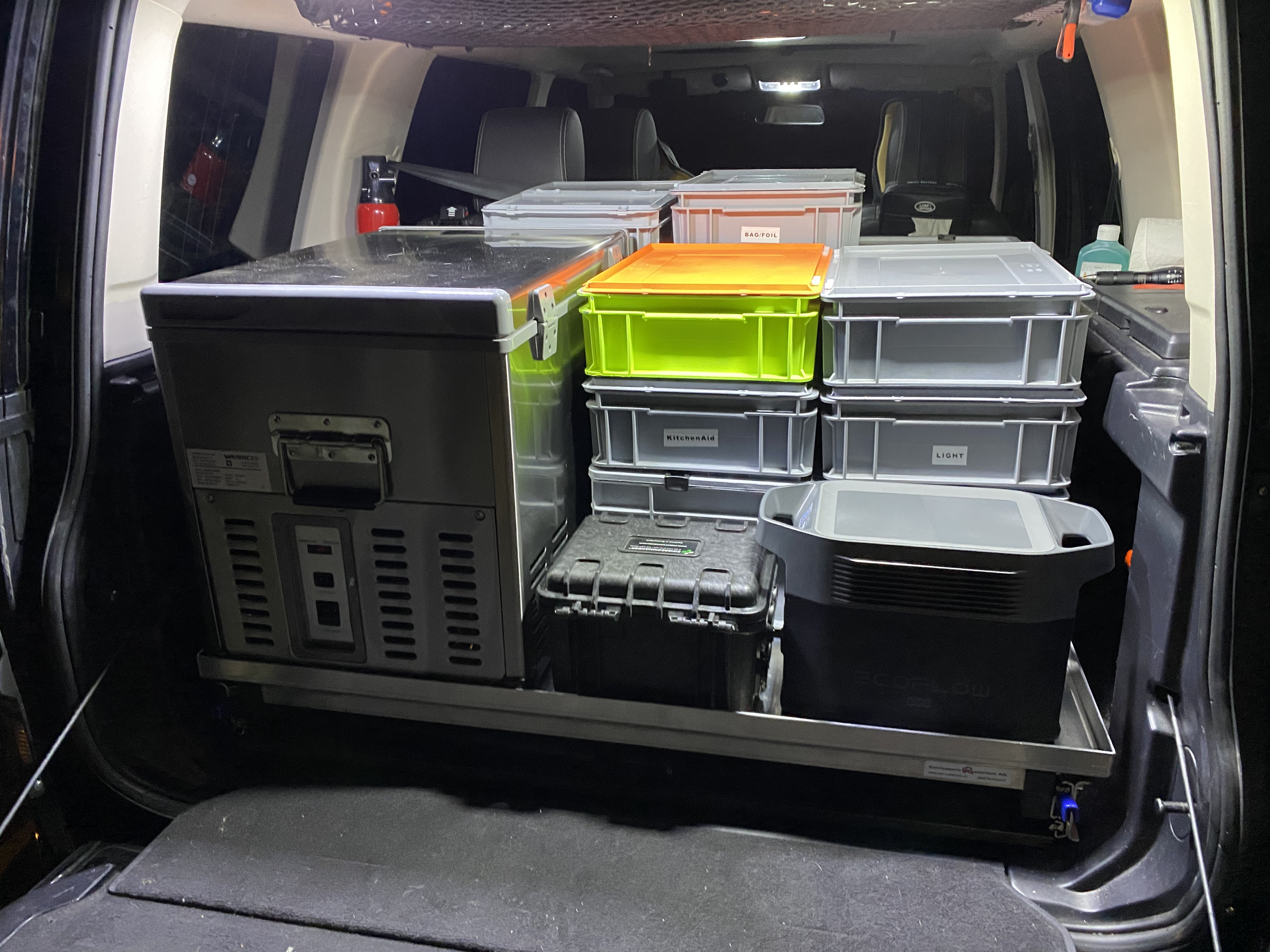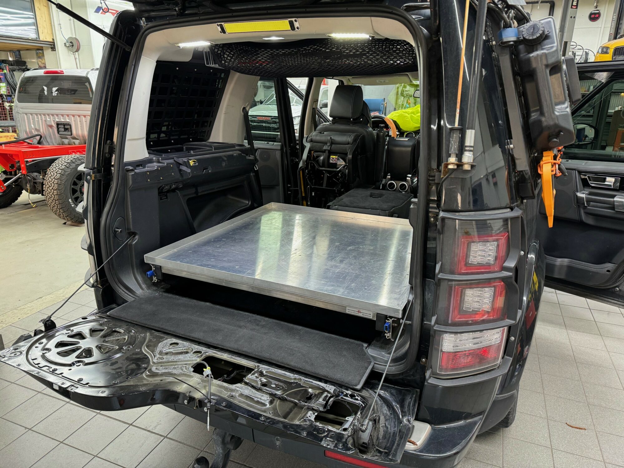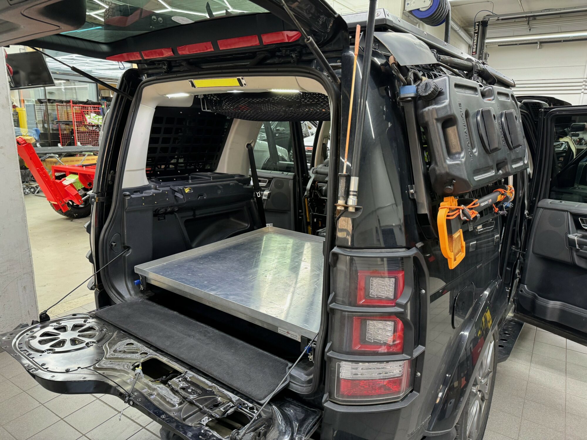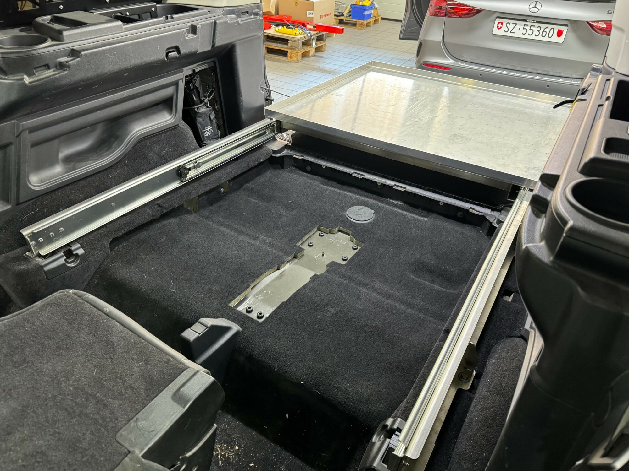 NEUPREIS 2800.- CHF Schwerlastauszug zu Land Rover Discovery 4 (Rusterholz AG). Sonderanfertigung von Rusterholz Carrosserie AG Richterswil (Feuerwehrfahrzeug Ausbauer). Wurde speziell für den LR4 gefertigt. Schwerlast Heckauszug mit Transportwanne. Unterabu und Auszug-Rahmen in CrNi Stahl Schweisskonstruktion. Wanne LxBxH 1075x1020x30mm, 3.0 mm Aluminiumblechwanne. Schwerlastauszugsschienen. Inklusive Spezialschrauben und Spacer. Passend gemacht. Unter dem Lastauszug kann ein Campingtisch daruntergeschoben werden. Auf Anfrage ist dieser noch vorhanden. 1a Ausführung. Wurde nur 2 Jahre gebraucht. Leider hatte das Fz einen unverhältnismässigen teuren Motorschaden, daher wurde dieser Lastenauszug ausgebaut bzw. steht nun zum Verkauf. 1a Qualitatsfabrikat von Rusterholz AG. Unikat. Dieses Fahrzeug war ein Siebensitzer, die 3. Sitzreihe wurde ausgebaut. Muss abgeholt werden. Kanton SG, Eschenbach