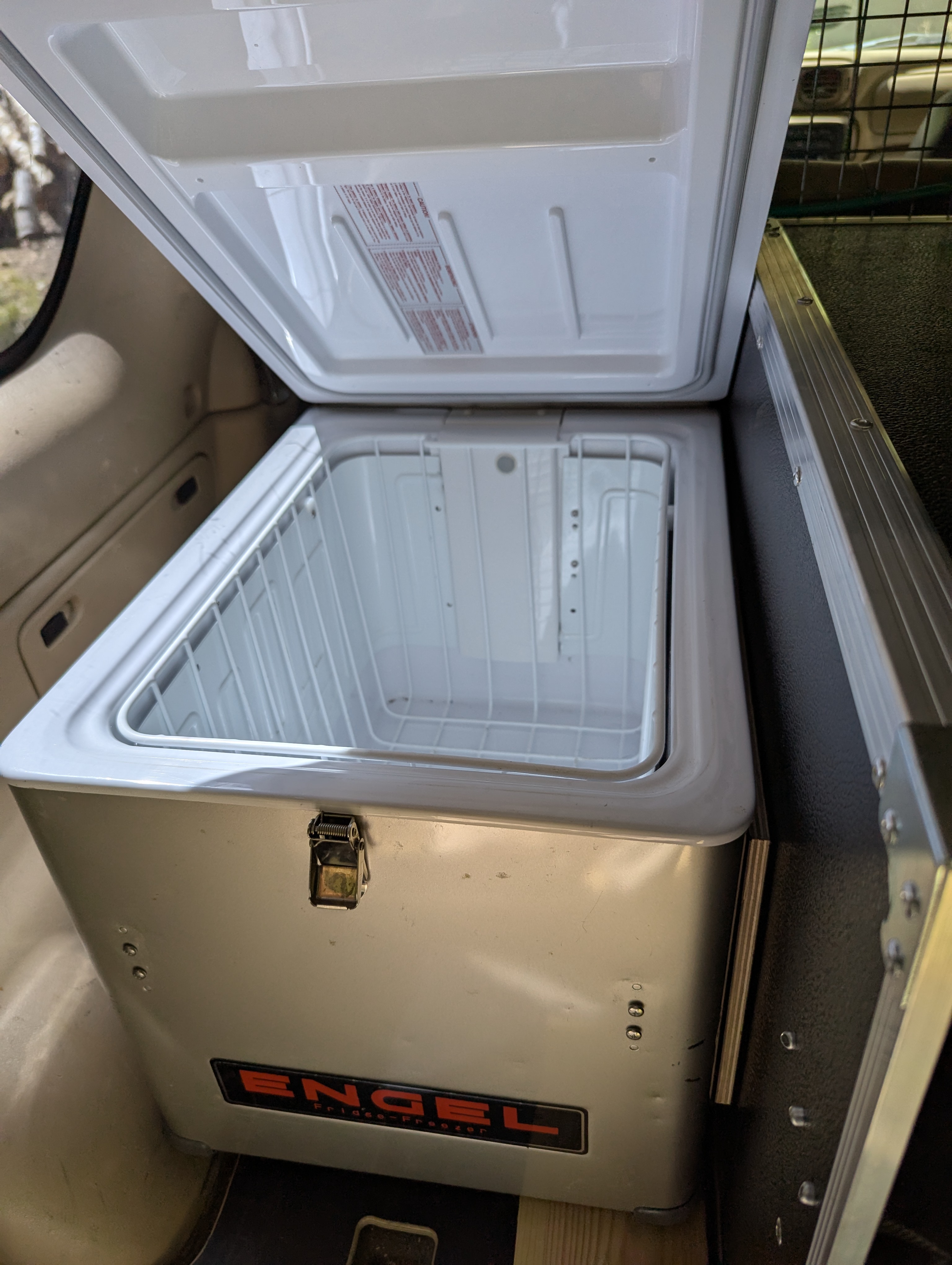 Ausbau für die Rücksitze: Stauraumregal & Platz für eine Zweitbatterie (AGM-Batterie & T-Max-Relais gebe ich gerne mit) – aktuell zurückgebaut, da das Auto als Alltagsfahrzeug genutzt wird