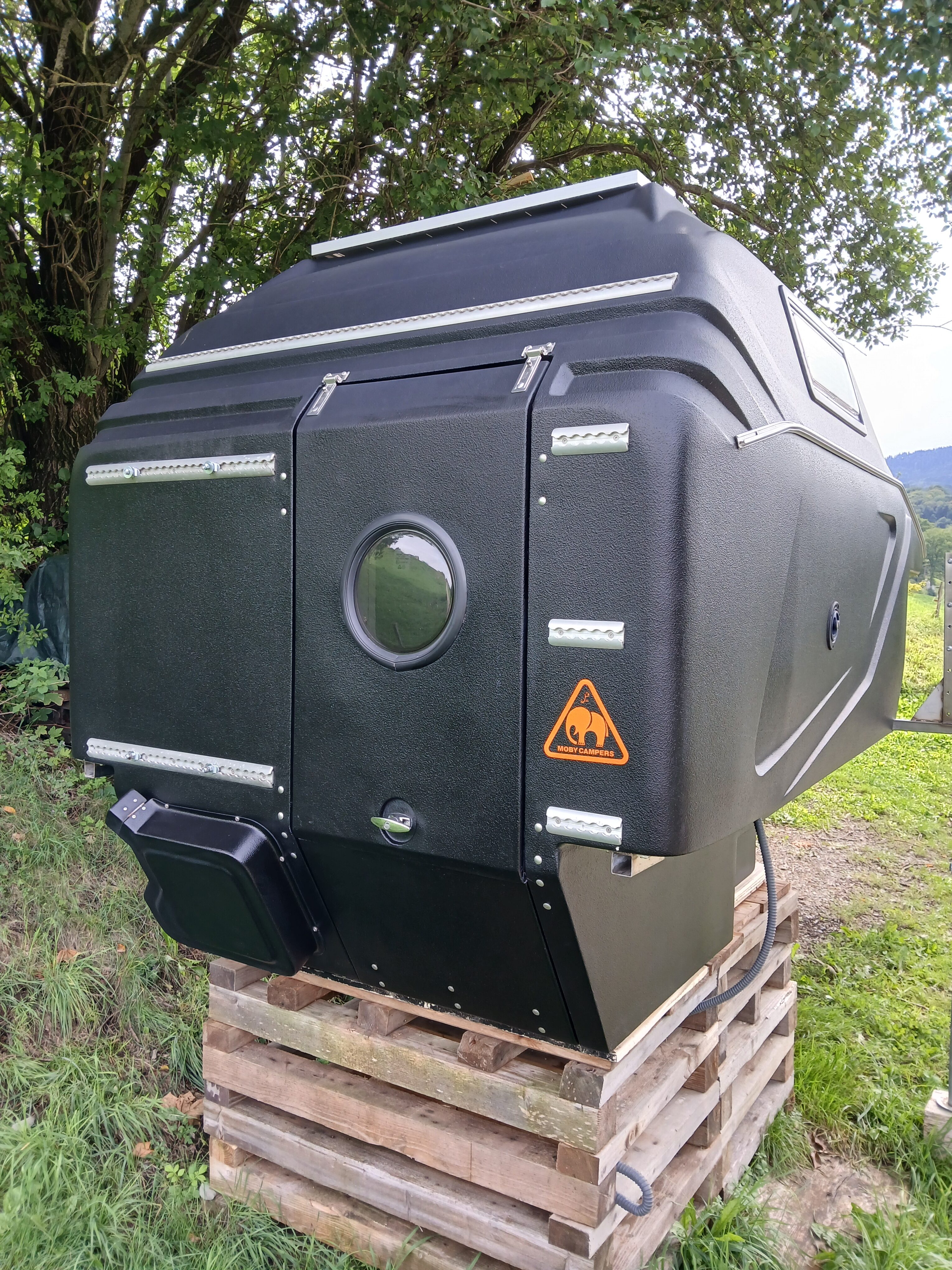 Verkaufe eine sehr gepflegte Geocamper Wohnkabine aus GFK, passend für die gängigsten europäischen Doppelkabinen-Pick-ups. Die Kabine in Tiefschwarz ist kompakt und leicht (Nettogewicht 380 kg) und dank der robusten Rieko Kurbelstützen einfach absetzbar.
