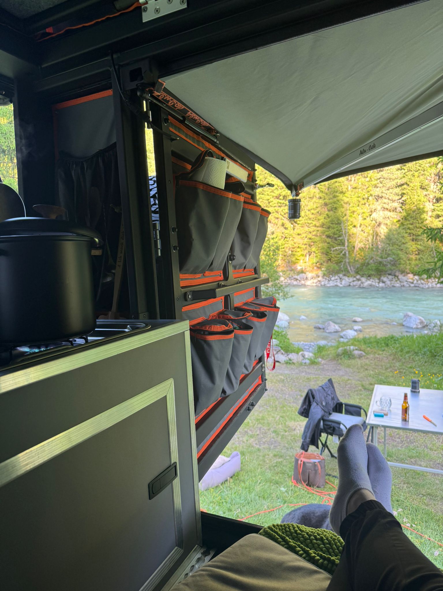 • Vollständige Campingausrüstung inklusive Kochgeschirr, Pfannen, Campingset mit Besteck von FrontRunner sowie zwei hochwertige Campingstühle von FrontRunner und einer ARB Firepit Feuerschale. Somit alles dabei was du für entspanntes und autarkes Camping brauchst