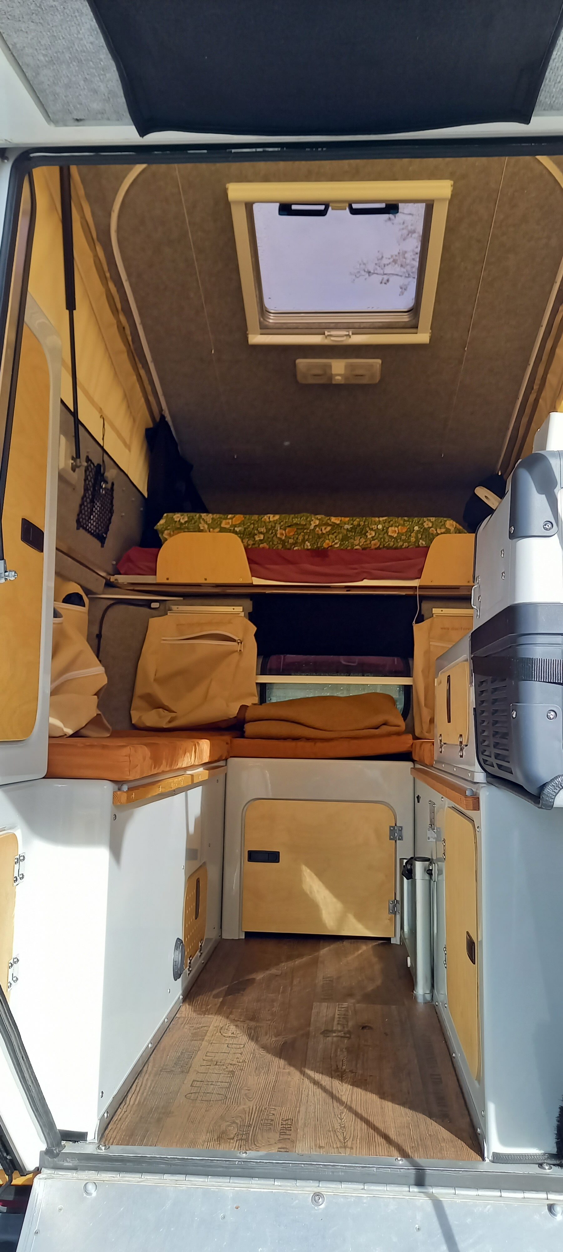 Erstzulassung Februar 2024, nur 650kg, ausziehbares Bett im Alkoven 1.60m x 2.10m, Fleecevorhang rund ums Bett (für Kälteschutz und Verdunkelung), 2 Ausstellfenster plus Verdunkelung und Moskitonetz, Dachluke 48x48 plus Verdunkelung und Fliegengitternetz, Koch-Spülkombi, Gaskocher, 50l Wassertank plus Filter, Sandbleche, Dieselstandheizung, Dieselentnahme beim Fahrzeugtank direkt, Rückfahrkamera usw.