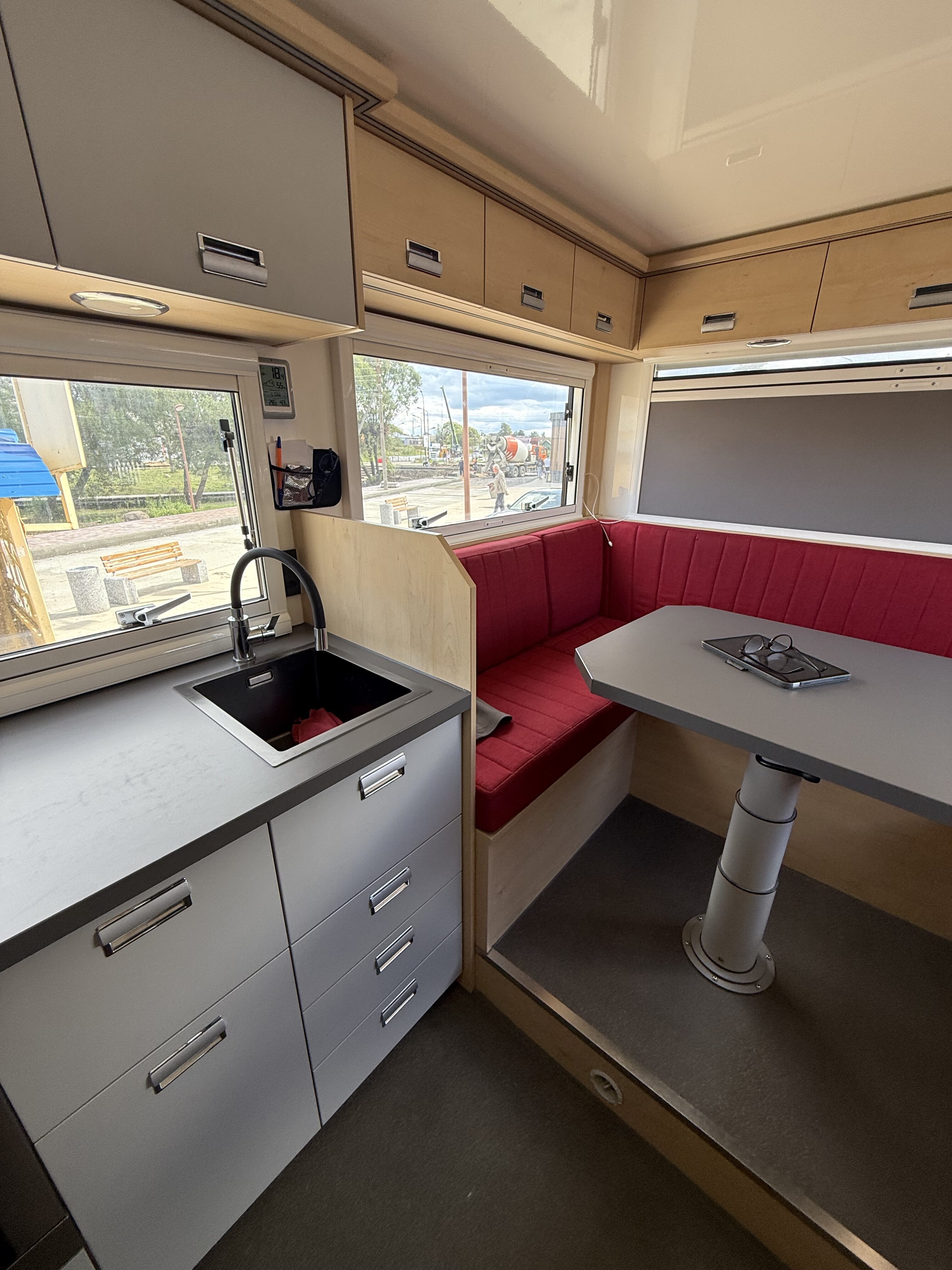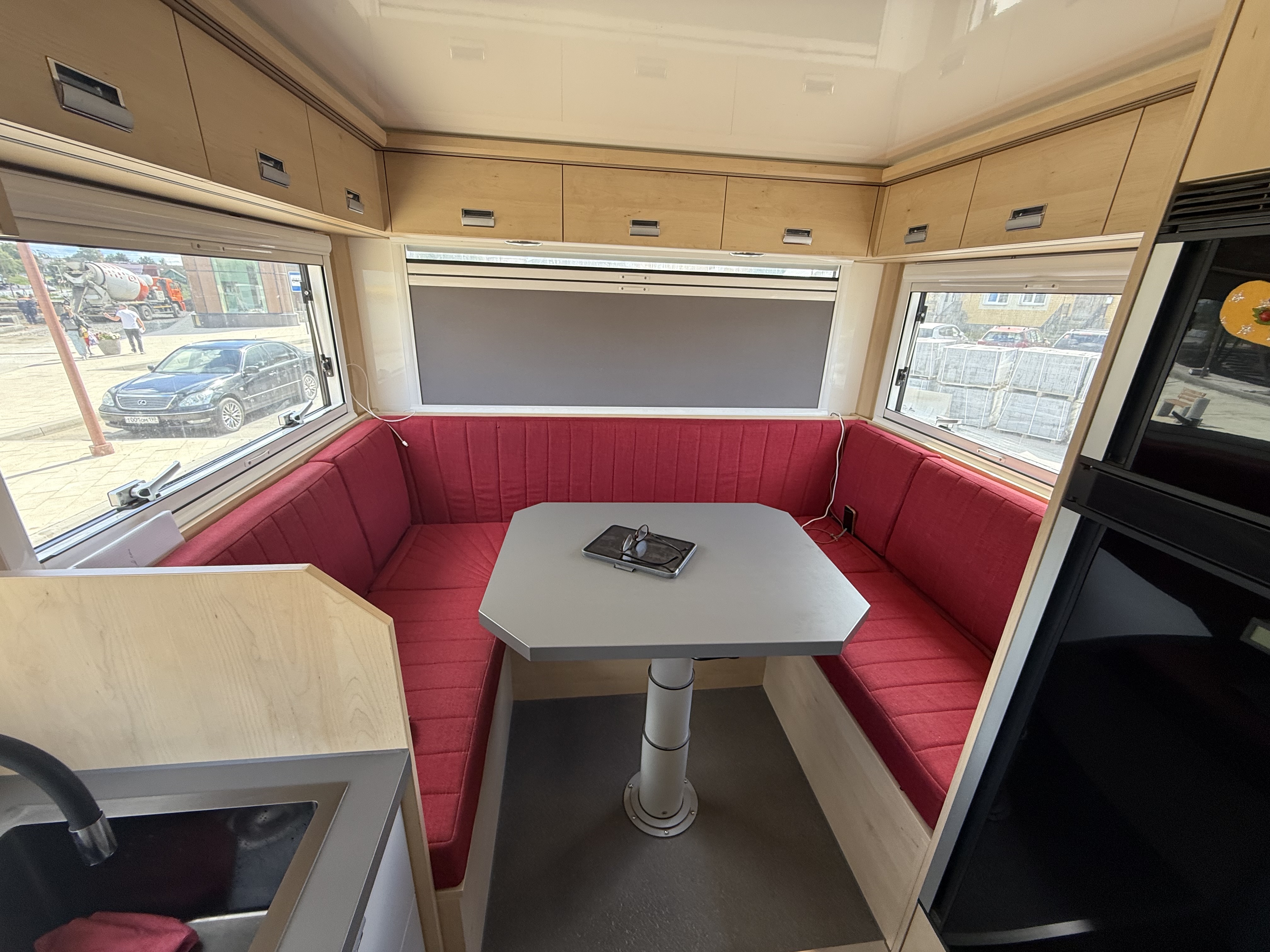 - Beleuchtung innen: LED für indirektes Licht separat schalt- und dimmbar für Schlaf- und Wohnbereich, Bad und Küche