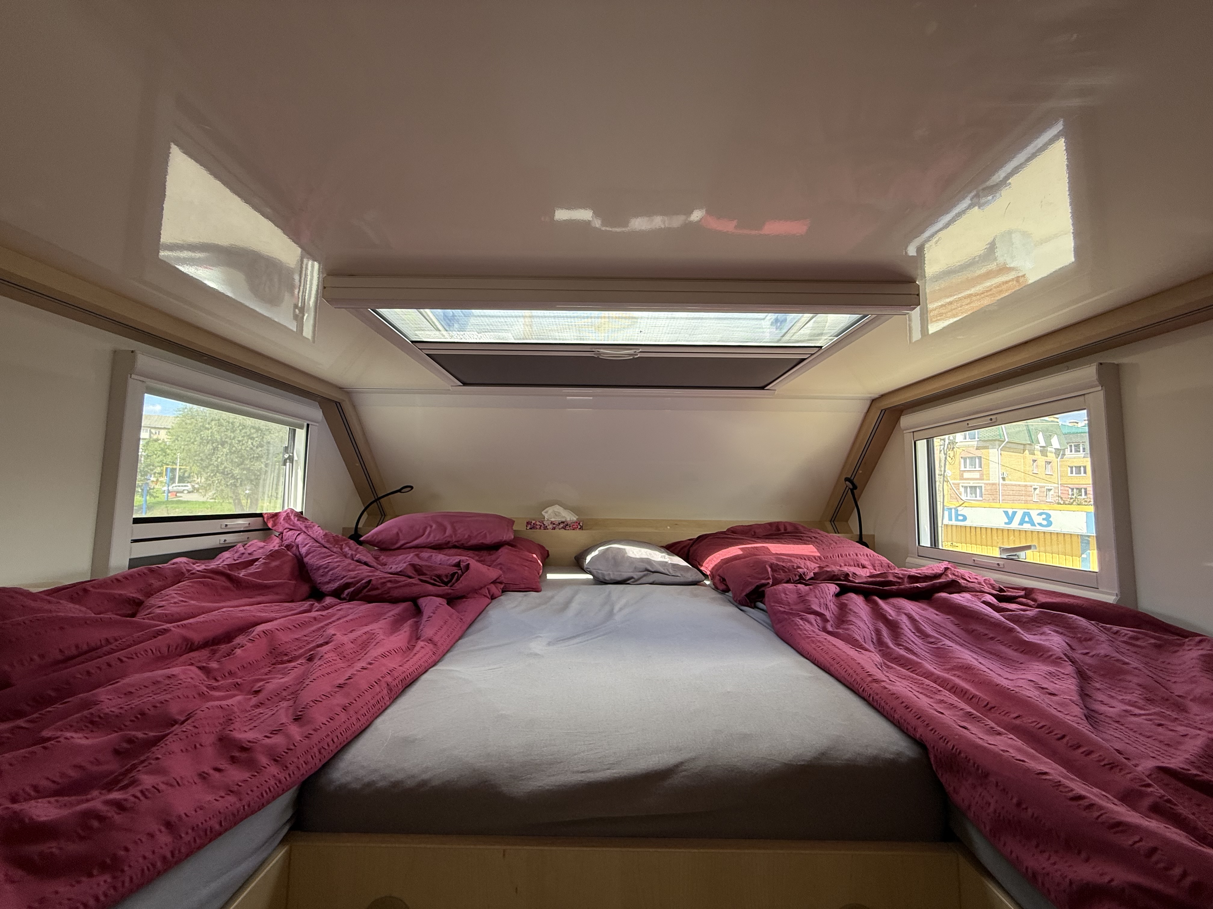 - Outbound Dachluke 99×60cm im Alkoven mit Fliegengitter und Verdunkelung