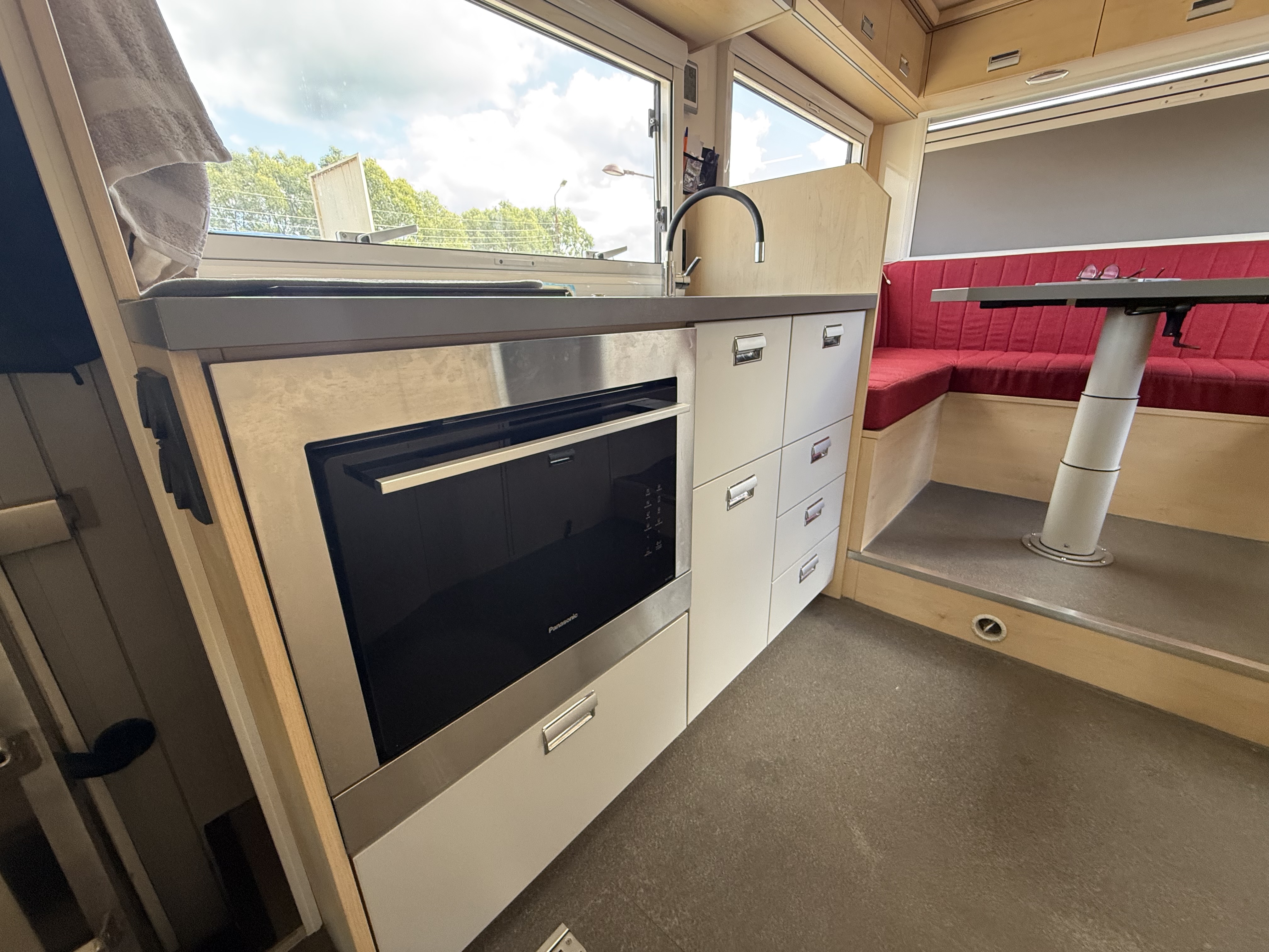 - Aussenküche im Staufach mit 220 V Anschluss, Induktion Kochplatte und Beleuchtung.