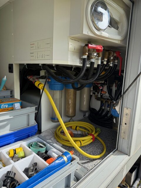 - Wasserpumpe und Fittings zum befüllen der Wassertanks ab Fluss oder Brunnen