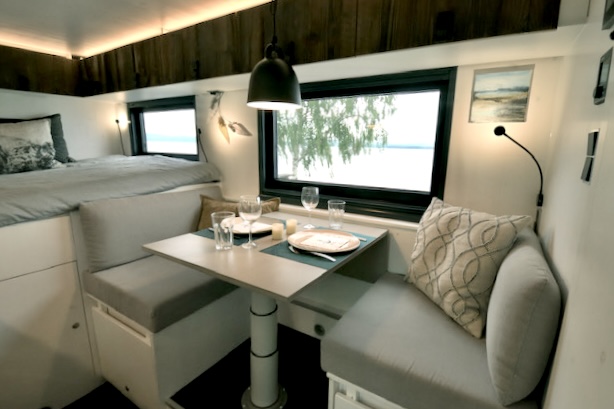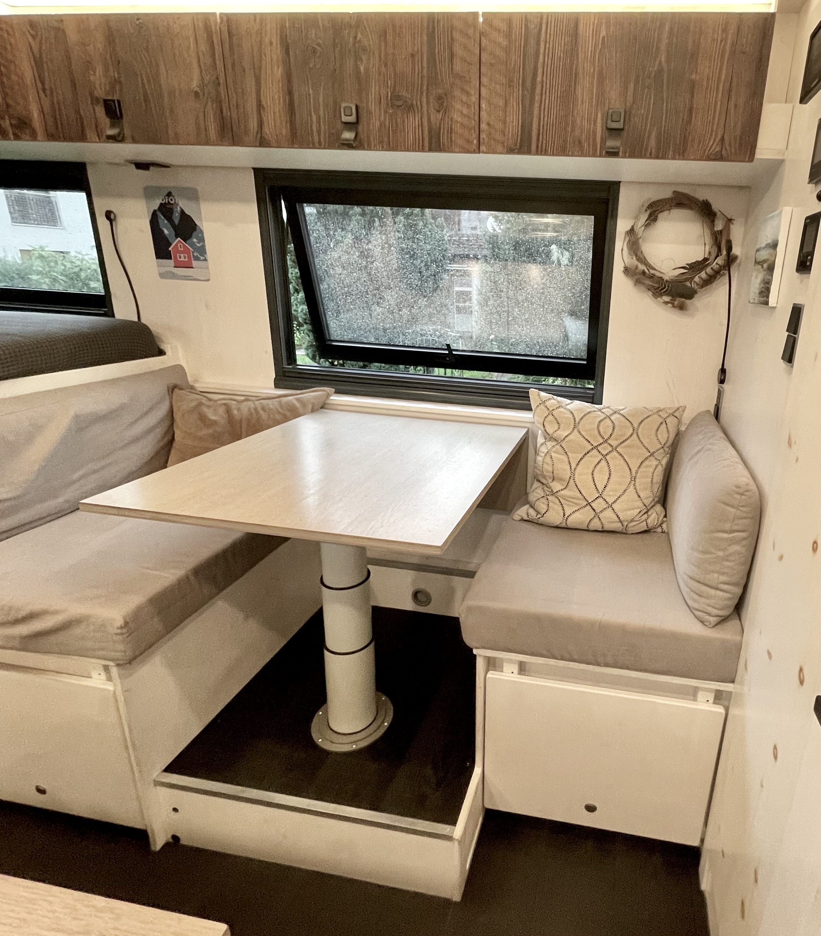 - Verlängerbarer Tisch sowie Sitzbänke (gemütliche sofaähnliche Sitzgelegenheit)