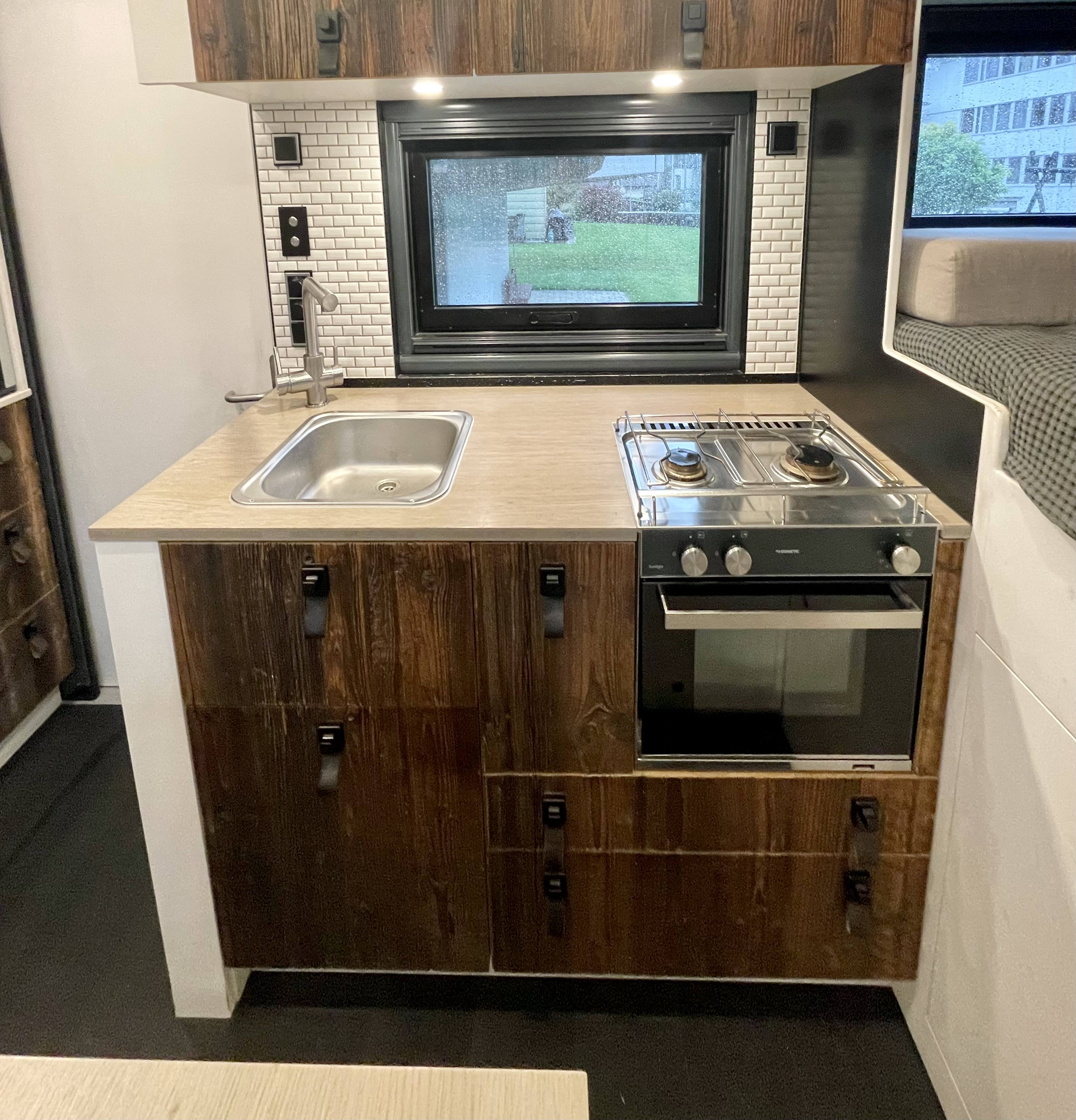 - Ausziehbare Aussenküche mit Zweiflammengaskocher