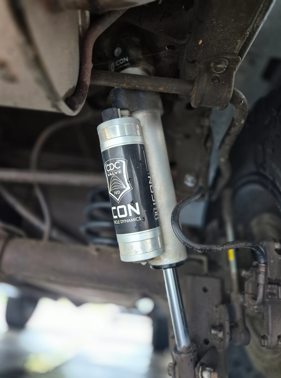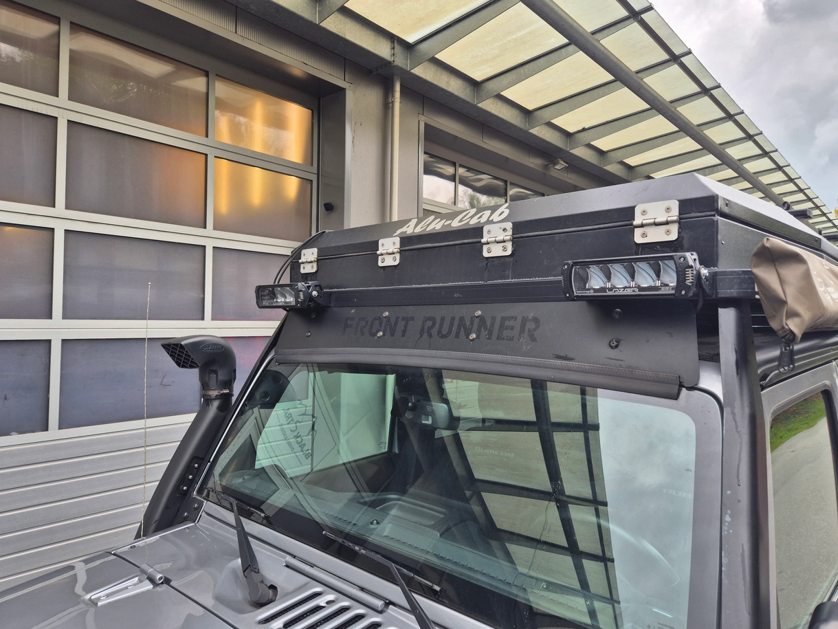 • Hochwertiges 4-Zoll-Fahrwerk: AEV-Komponenten in Kombination mit ICON-Stossdämpfern inkl. Reservoir – bekannt für ihre Robustheit und ihren Fahrkomfort, Wartung der Dämpfer erfolgt in KW25