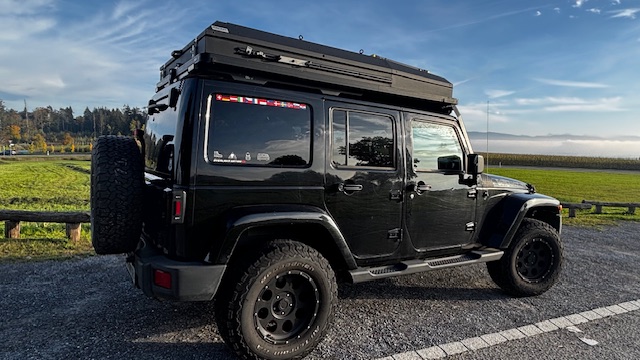 Schweren Herzens verkaufen wir unser schwarze Perle – einen komplett reisefertigen Jeep Wrangler JK Unlimited CRD 4×4 aus der Modellreihe Sahara, Baujahr 2011. Unser Jeep hat uns auf autarken Overland-Reisen quer durch Europe immer treu begleitet, der Komplettausbau mit hochwertigem Alucab Dachzelt, eingebaute Küchenzeile, Dusche, uvm. wird mitverkauft, sodass er mit dir direkt auf die nächste Reise durchstarten kann.