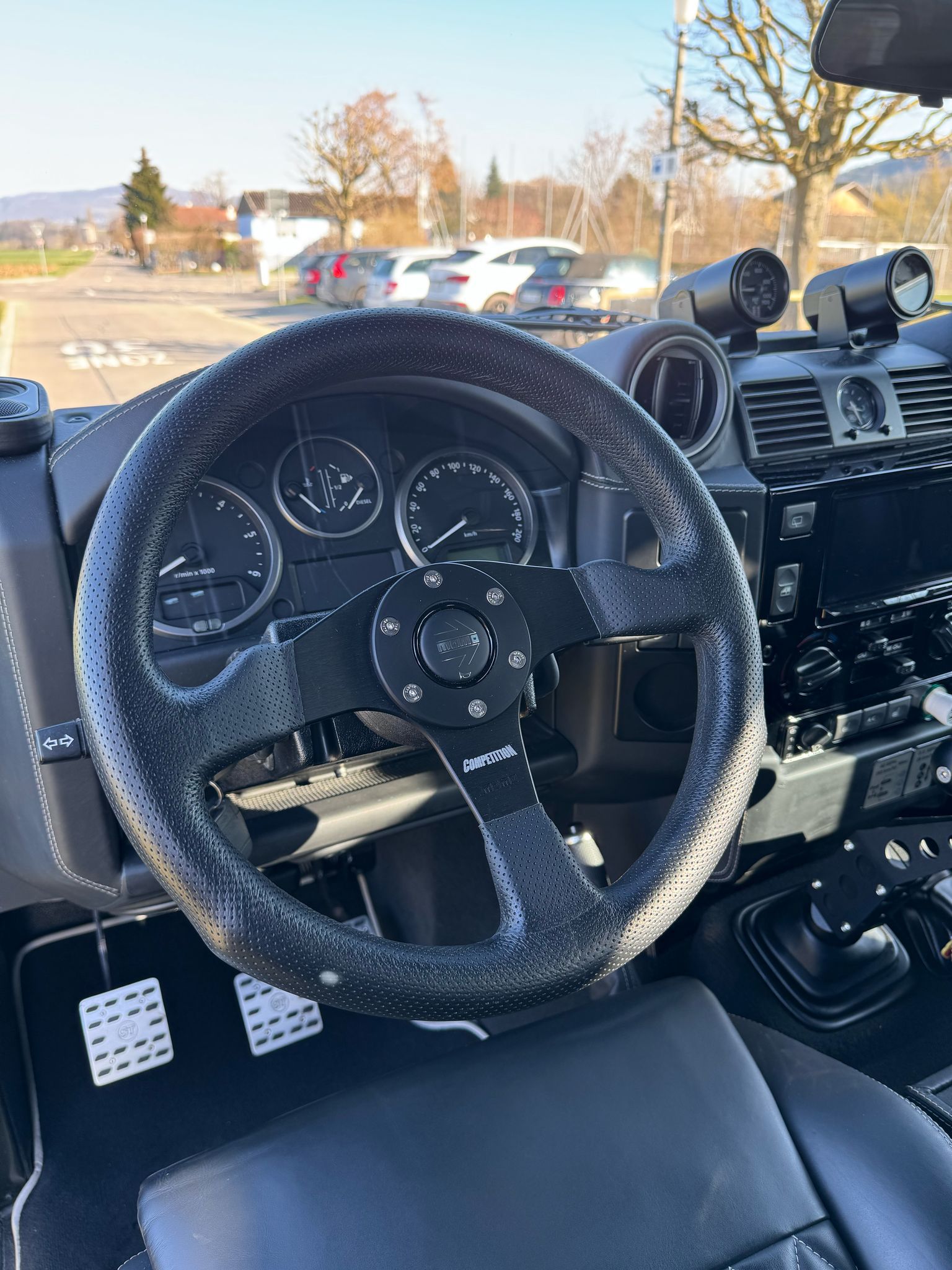 Landrover 90 mit Edelausstattung von Startech/Brabus. Zudem wurde die PS-Leistung optimiert (Chip-Tuning), neue Felgen aufgezogen und generell das Interieur veredelt (Navigations- und Audiosystem eingebaut, diverse Anzeigen und Schaltung sowie Pedalen). Zudem wurde der Hauptbremszylinder sowie Kupplungsnehmer und Geberzylinder neu gemacht. Das Auto wurde im 10/2023 vorgeführt ab MFK und ist in Top-Zustand > Aktualisierung MFK per 30. Oktober 2025 plus Service erfolgt.