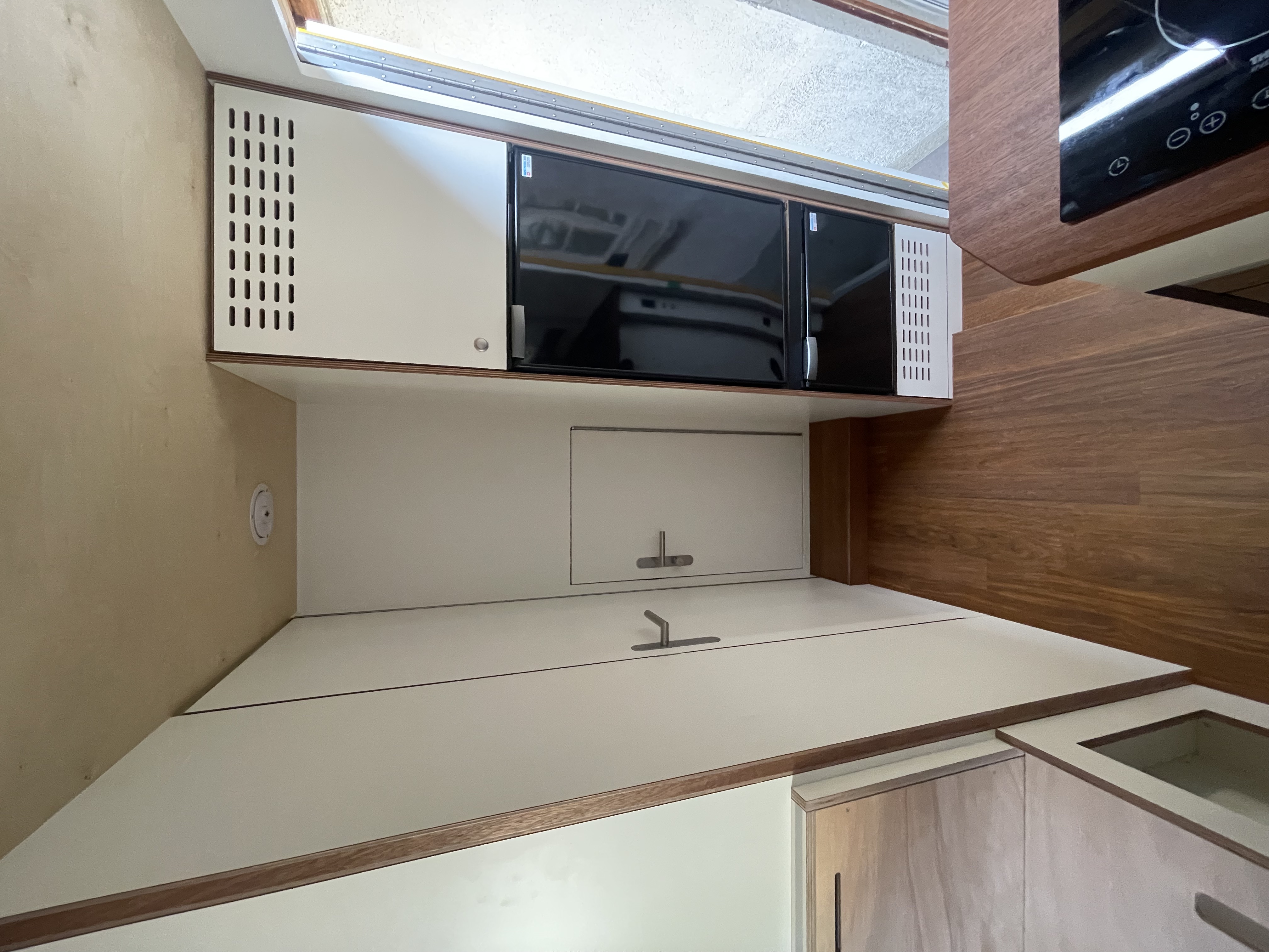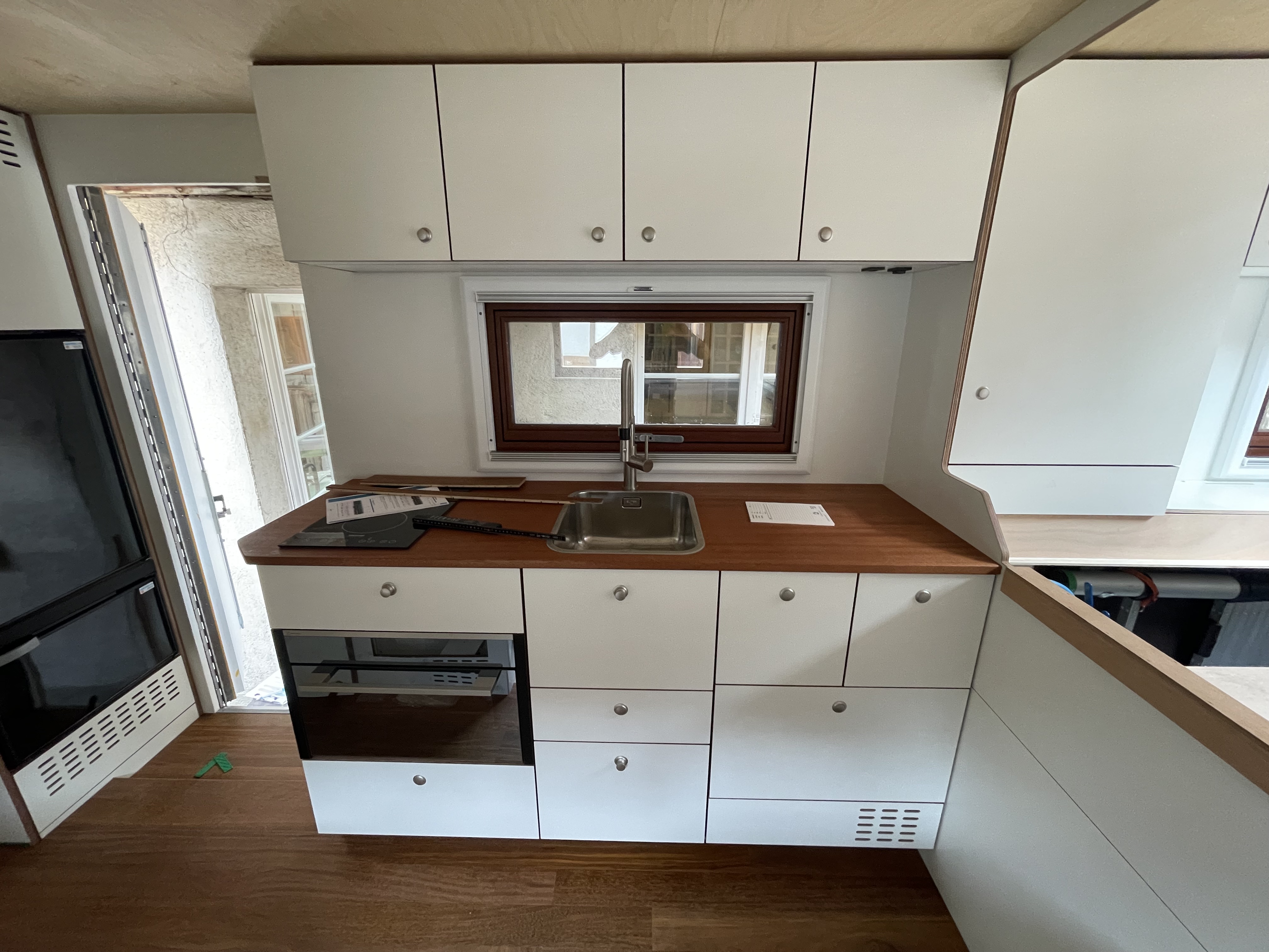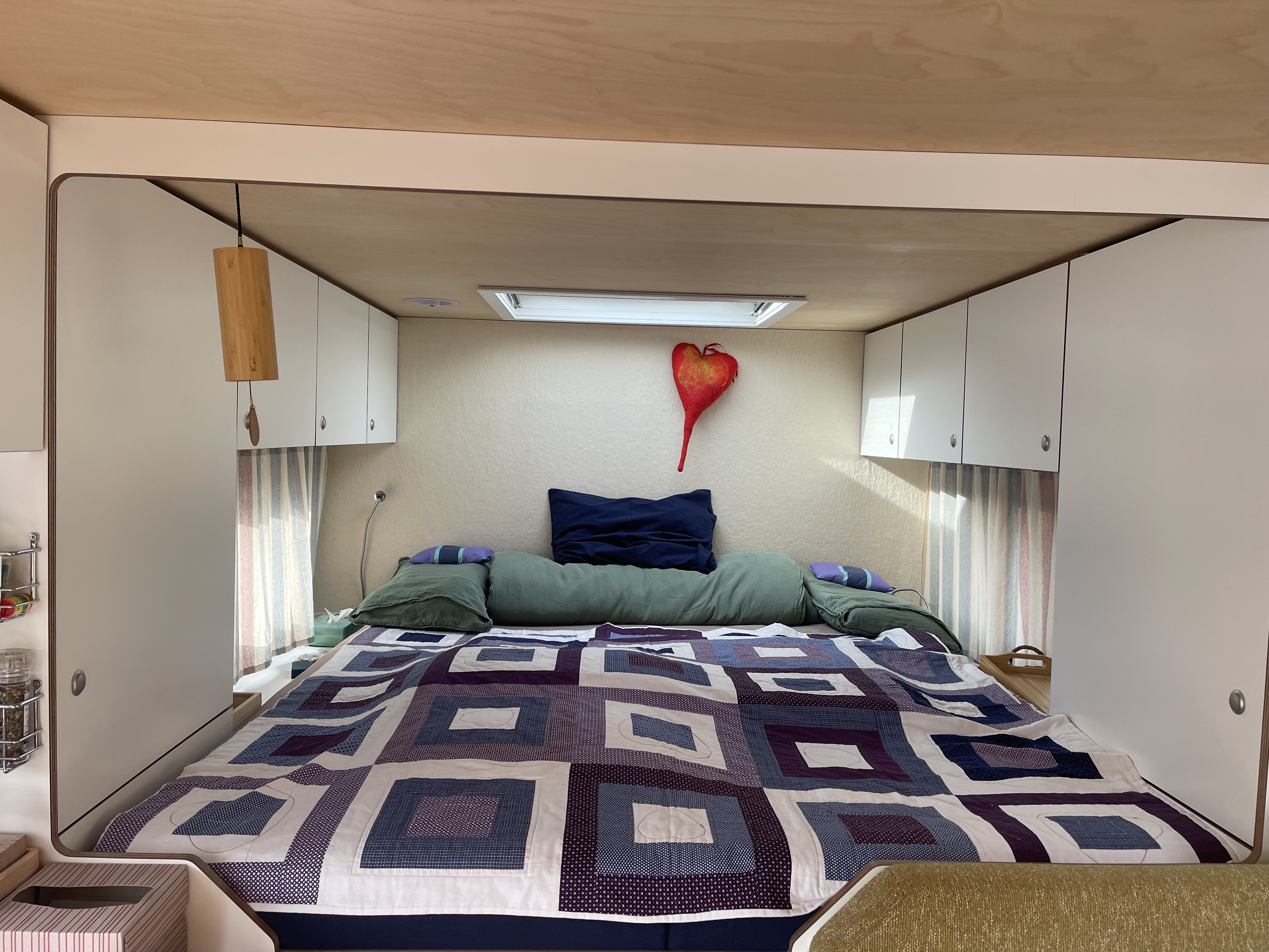 Die Wohnkabine ist komplett in Holz gefertigt und hat viel Platz für 2 Personen.