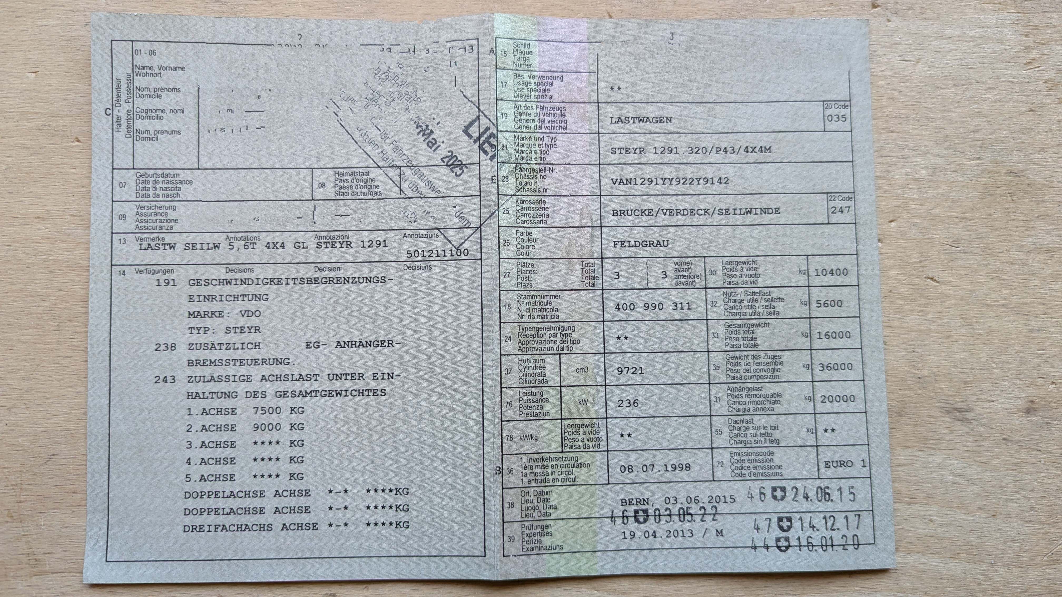 Ich verkaufe meinen Steyr 1291.320 von der Schweizer Armee.