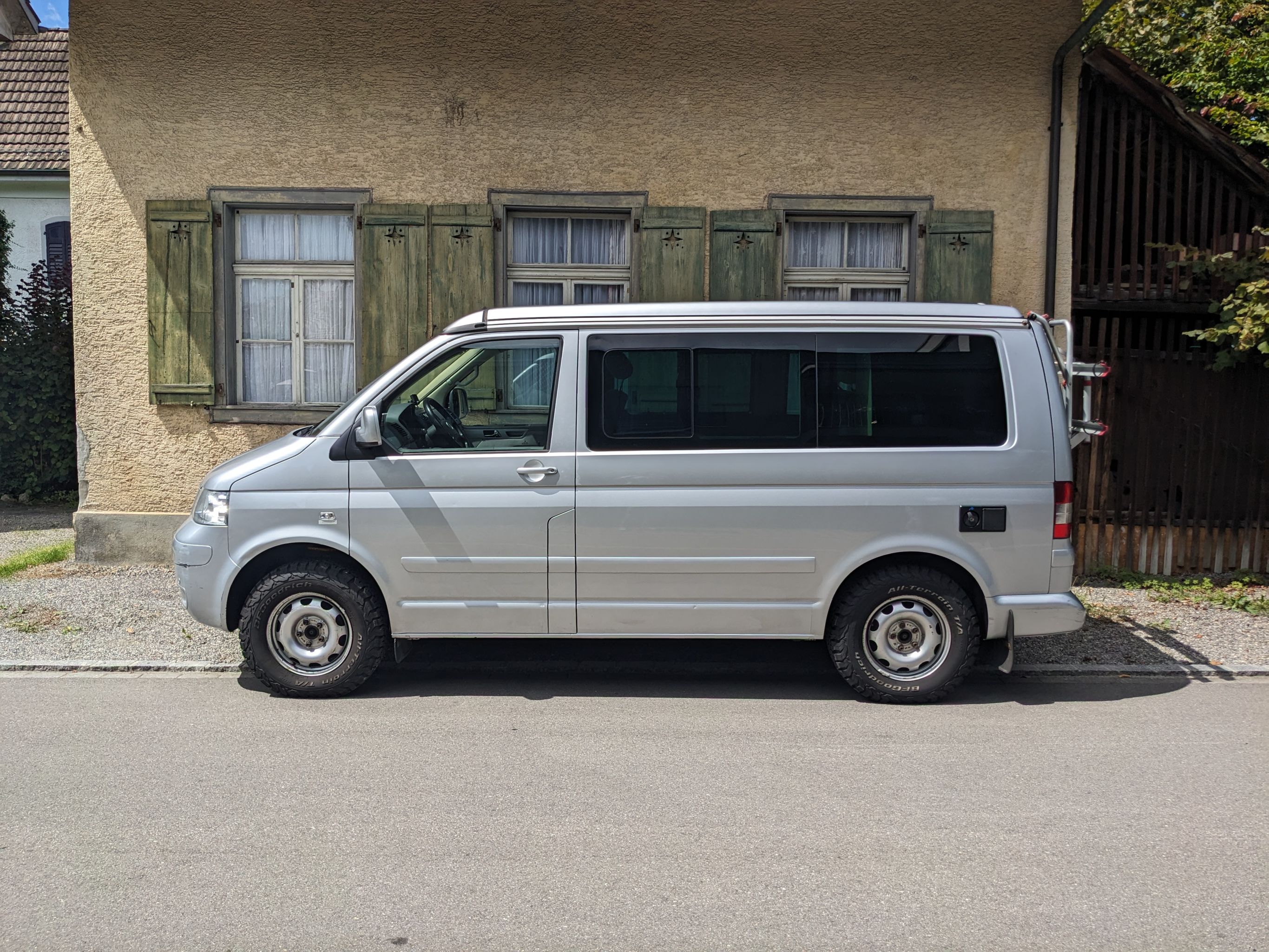 Seit ich den Bus 2010 übernommen habe, wurde er sorgfältig gepflegt und technisch weiter ausgerüstet. Ich habe zeitnah BF Goodrich All-Terrain-Reifen und passende Felgen montieren lassen. Zudem erfolgte ein Seikel-Umbau, der im Fahrzeugausweis eingetragen ist. Die Felgen und Reifen sind nicht gesondert eingetragen, das ist aber nicht notwendig – das Fahrzeug wurde zuletzt am 12.08.2025 problemlos vorgeführt. Im vorderen Bereich wurde ein Unterbodenschutz montiert.
