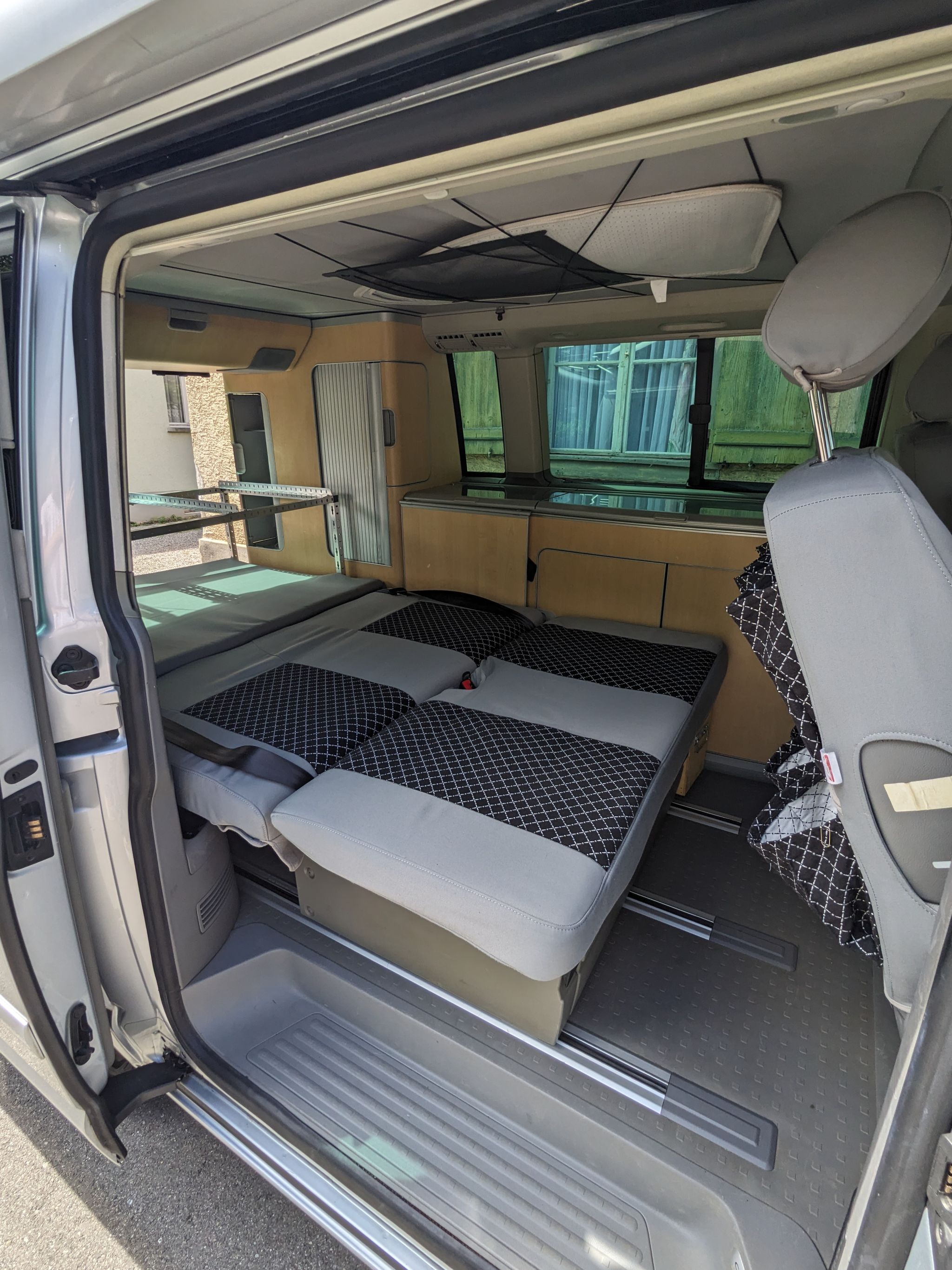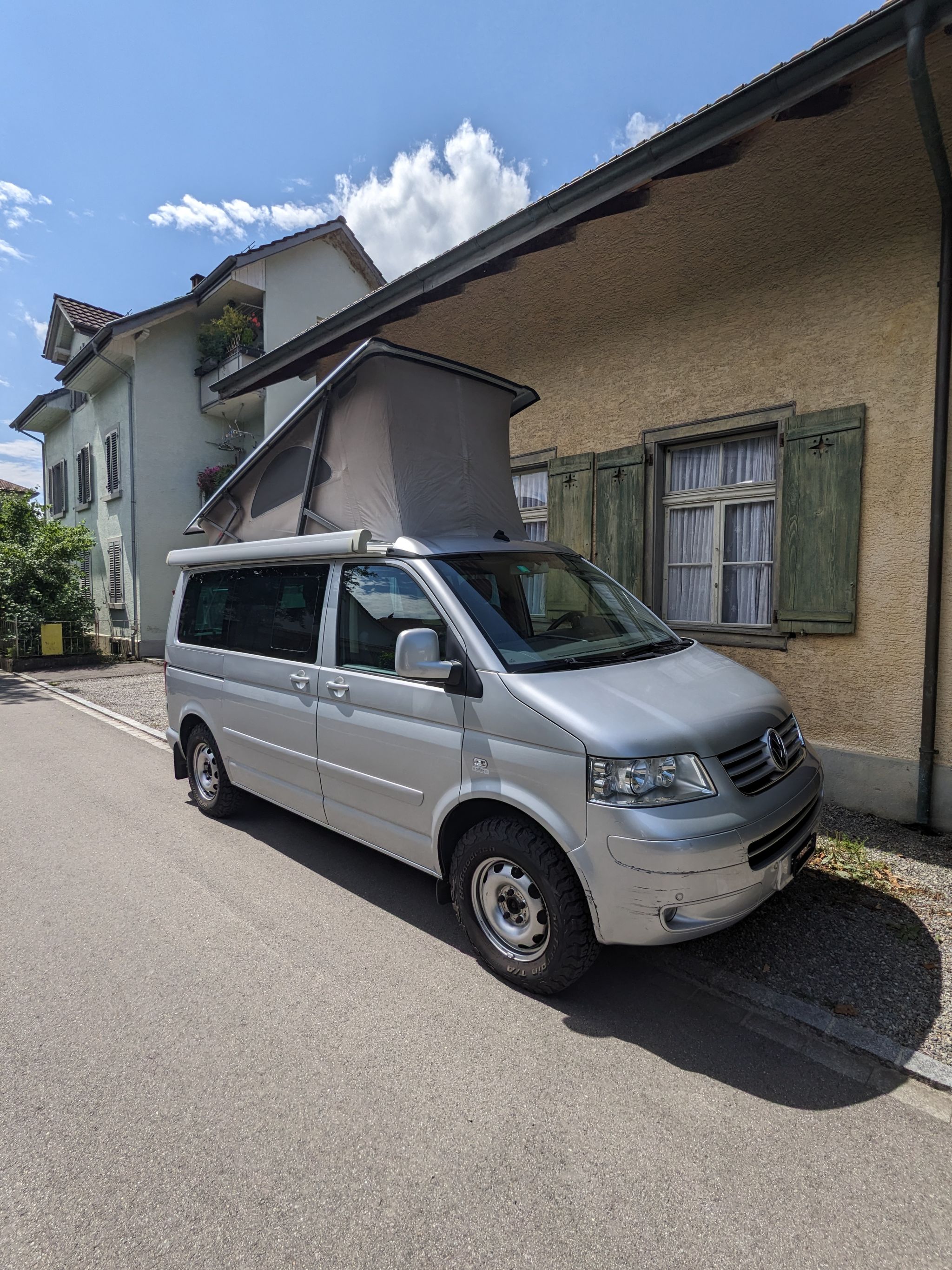Zum Verkauf steht ein VW T5 California, Jahrgang 2004, den ich 2010 aus erster Hand von einer Garage in Frutigen erworben habe. In den ersten sechs Jahren wurde das Fahrzeug kaum genutzt – es diente ursprünglich als eine Art „Gästezimmer“ für Bekannte der Vorbesitzer, die jedoch nie wirklich darin übernachtet haben. Bis 2010 standen daher nur rund 40’000 km auf dem Tacho, hauptsächlich von Fahrten zwischen Basel und Frutigen.