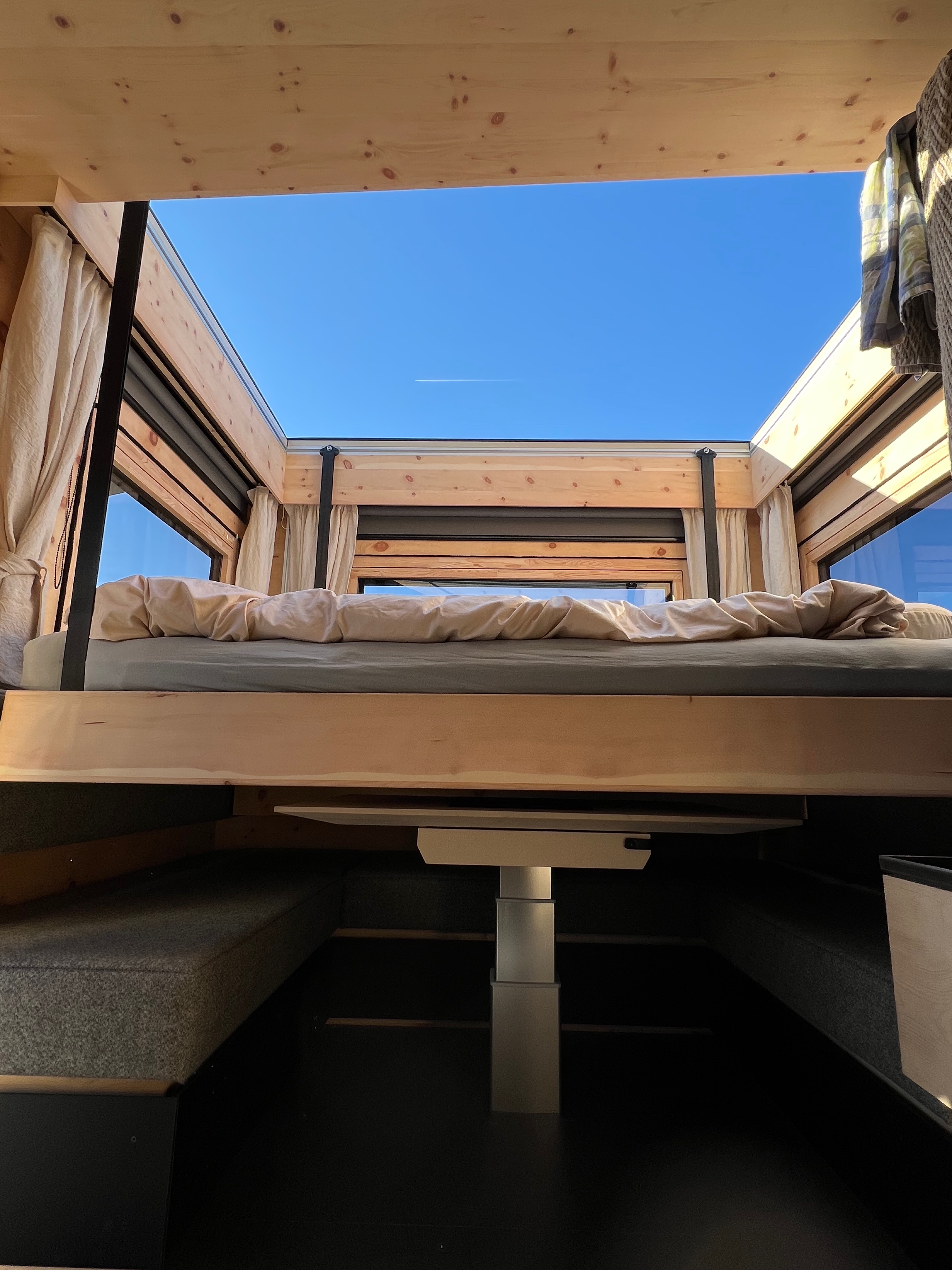 Dieses Fahrzeug ist ein ausserordentlich belastbares Expeditionsmobil. Ausgestattet mit sinnvollen redundanten Systemen und viel Stauraum bietet das Fahrzeug grosse Reserven. Das Interieur der Zirbenbox ist hochwertig, gemütlich und auf Lebensqualität optimiert.