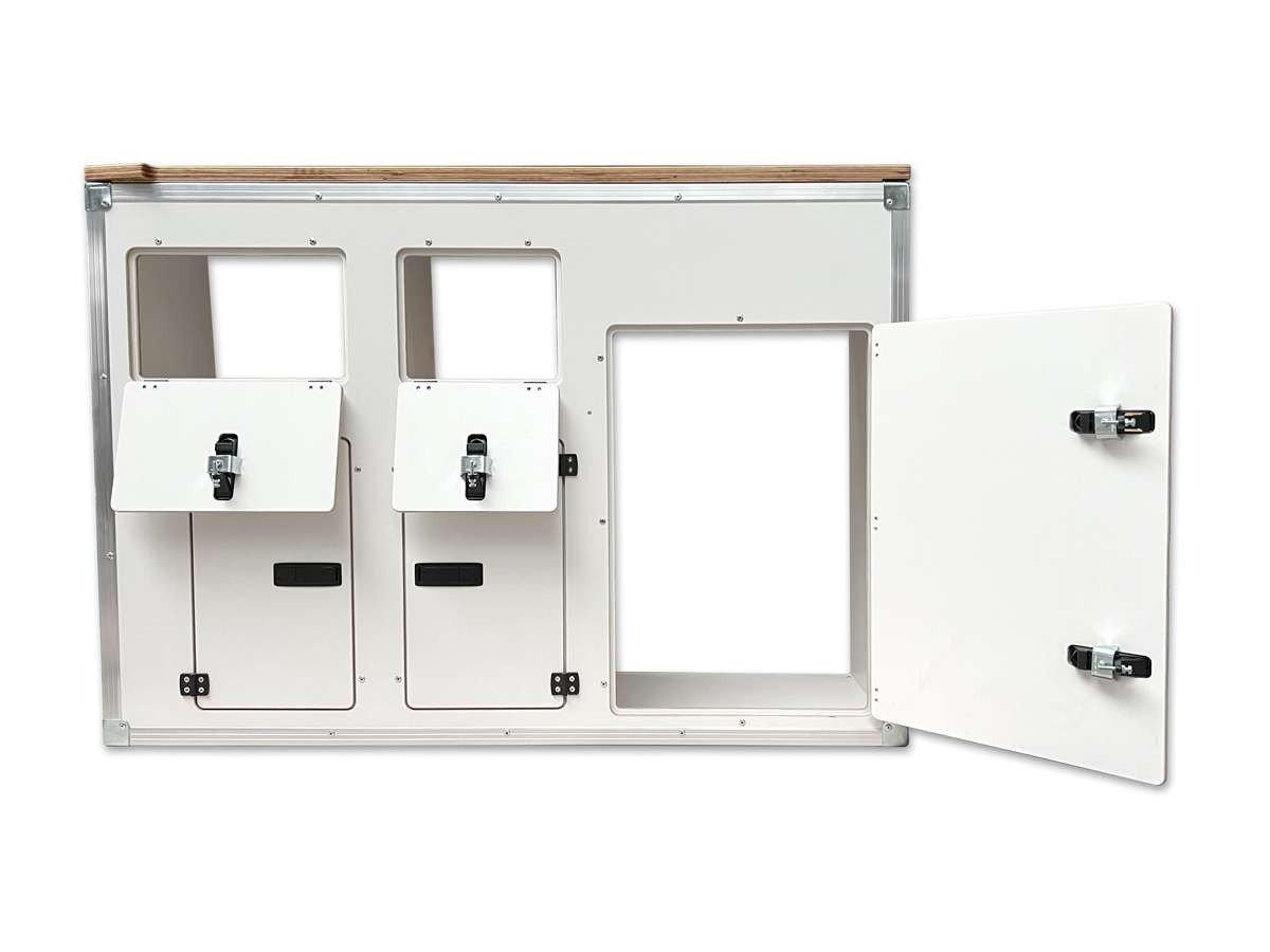 Wasserfest verleimtes Multiplex Fineply, Aluminium-Kantenschutz und stabile Beschläge für maximale Haltbarkeit.Mehr Stauraum statt Kühlschrankfach