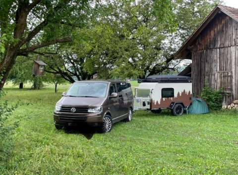 Wer einmal, nach einer ruhigen Nacht und herrlichem Holzgeruch, im Bruno aufgewacht ist – um den ist es geschehen. Bei schlechtem Wetter ist übrigens dank der Markise mit Seitenwänden immer genug Platz. Sollte die Familie grösser werden oder sein, bietet Bruno die Möglichkeit auf dem Dachträger ein Dachzelt zu montieren. Genau so schnell wie man angekommen ist, kann es dann auch wieder weitergehen. Streng nach dem Motto: Der Weg ist das Ziel.“